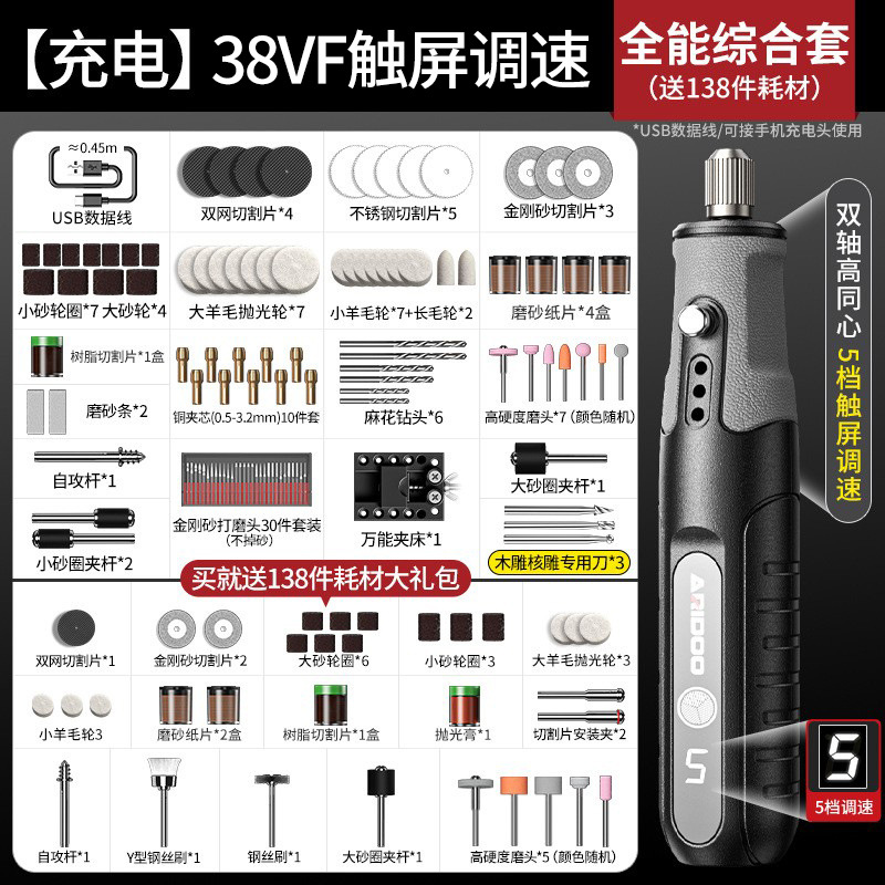 • [충전] 38VF 속도 조절: 만능 종합 세트 + 무료 소모품 138개