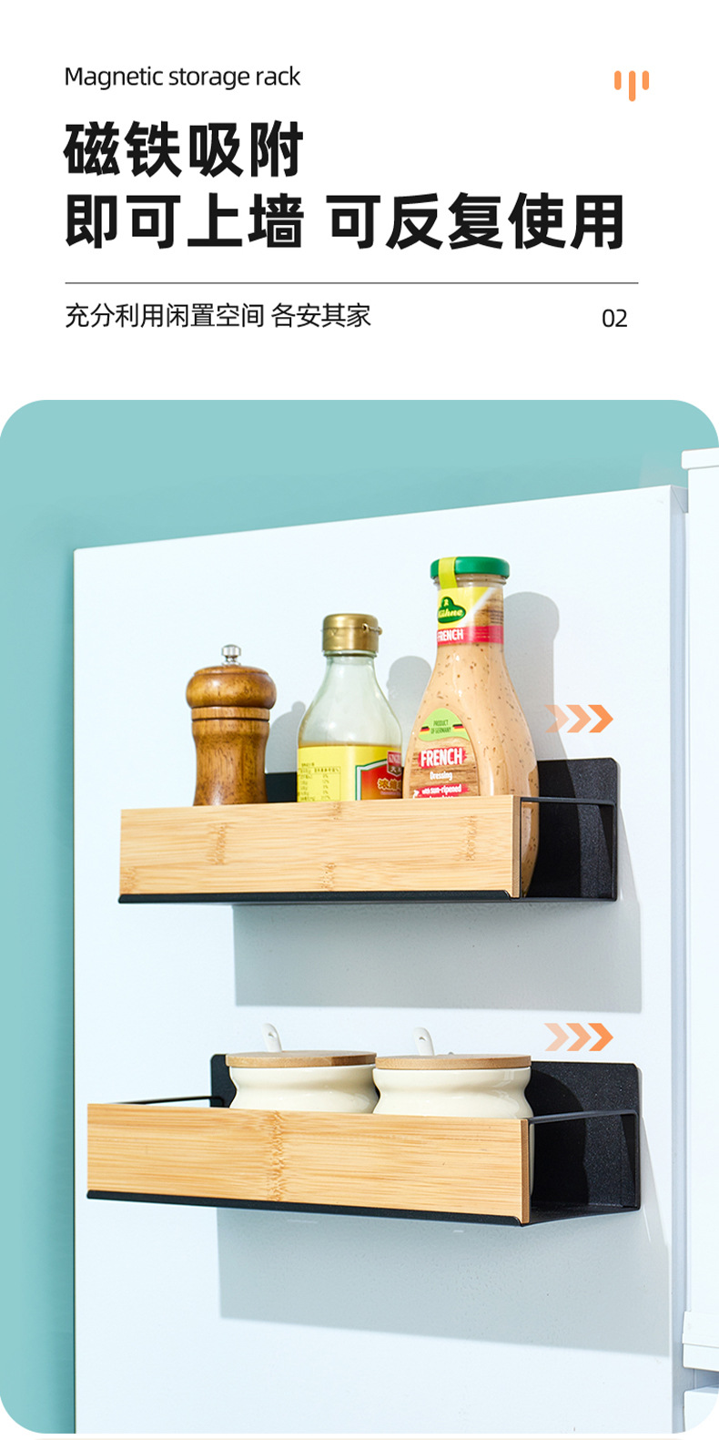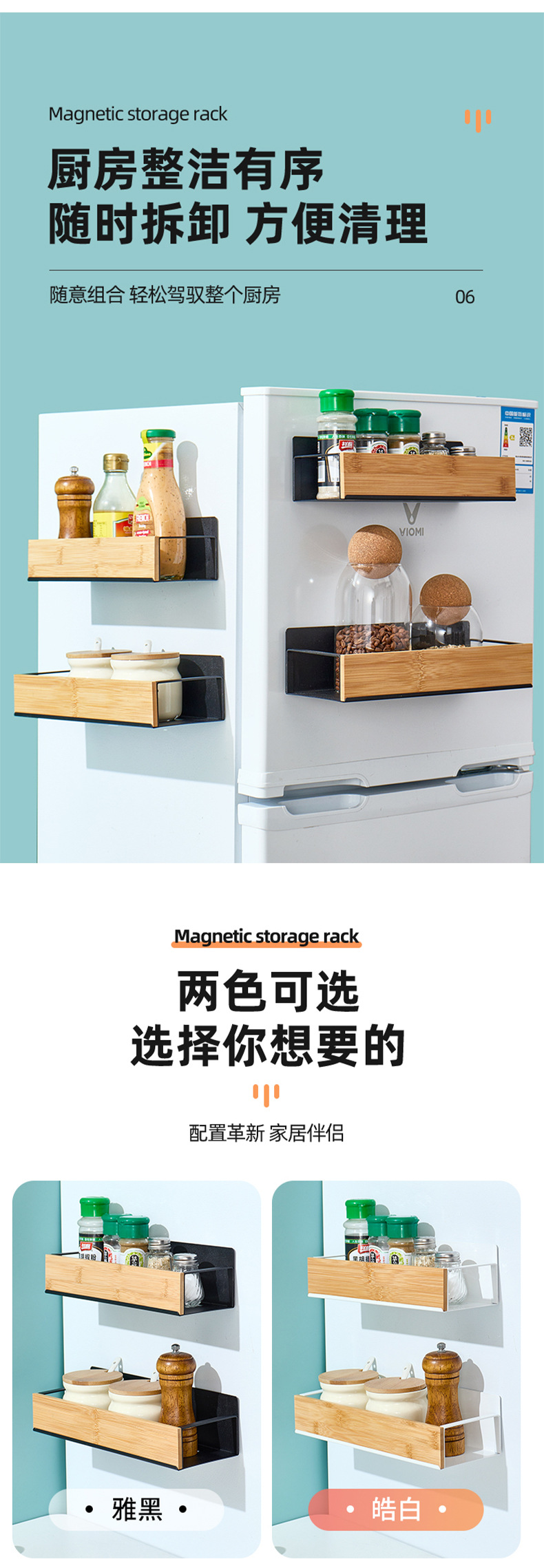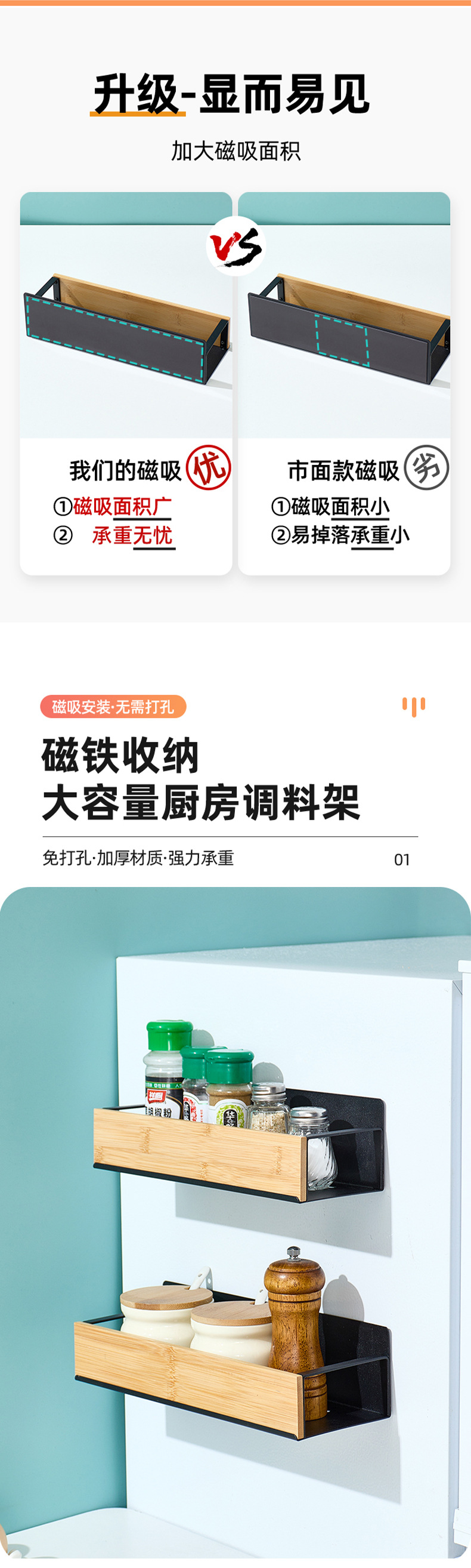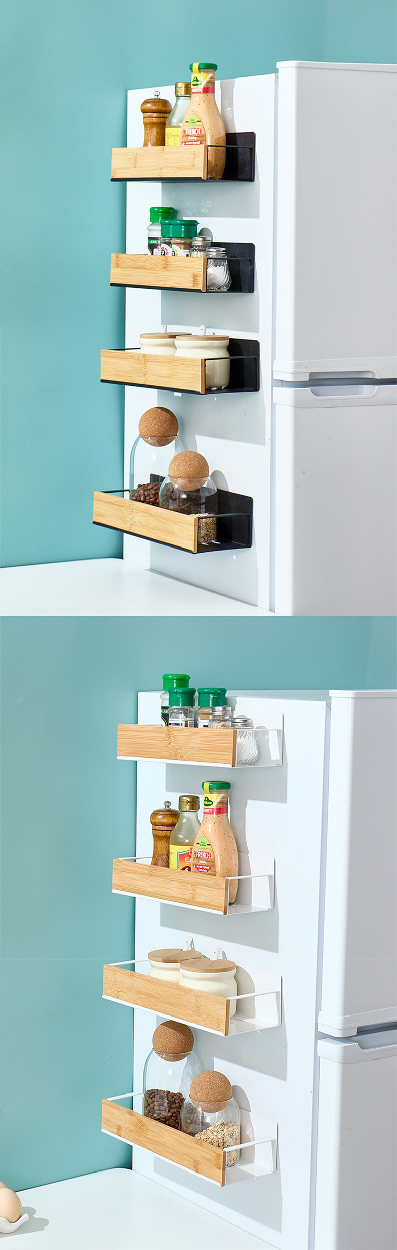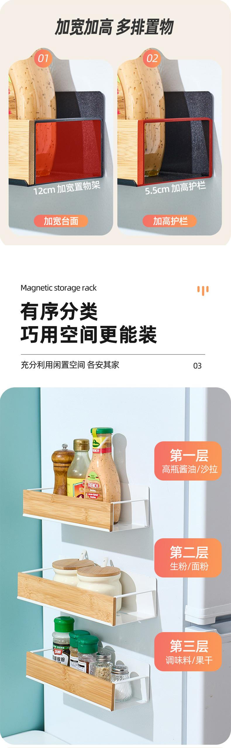 置物架多层收纳架厨房用品磁吸冰箱收纳盒免打孔调料架保鲜膜挂架