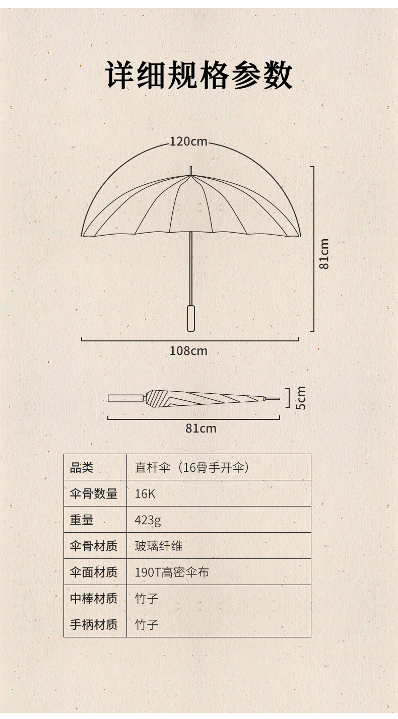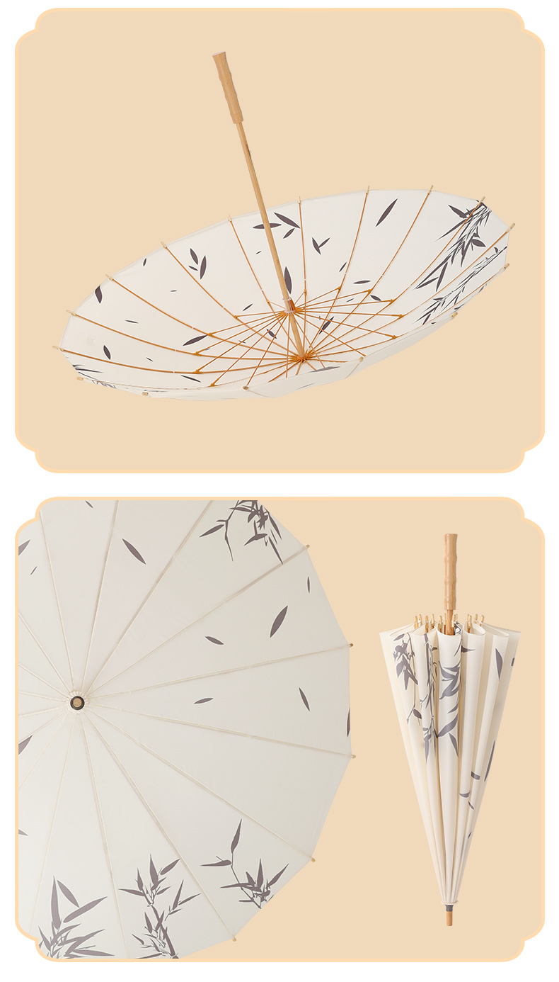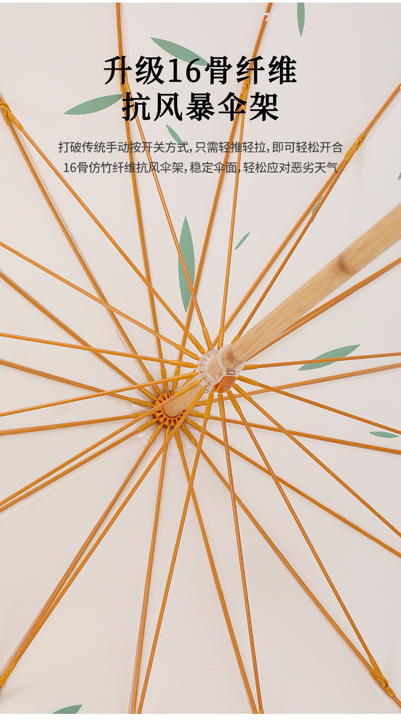 레트로 나무 손잡이 창조적 인 중국 스타일 긴 막대 우산 16-뼈 강화 바람 방지 대나무 잎 맑고 비 이중 사용 우산 로고 인쇄