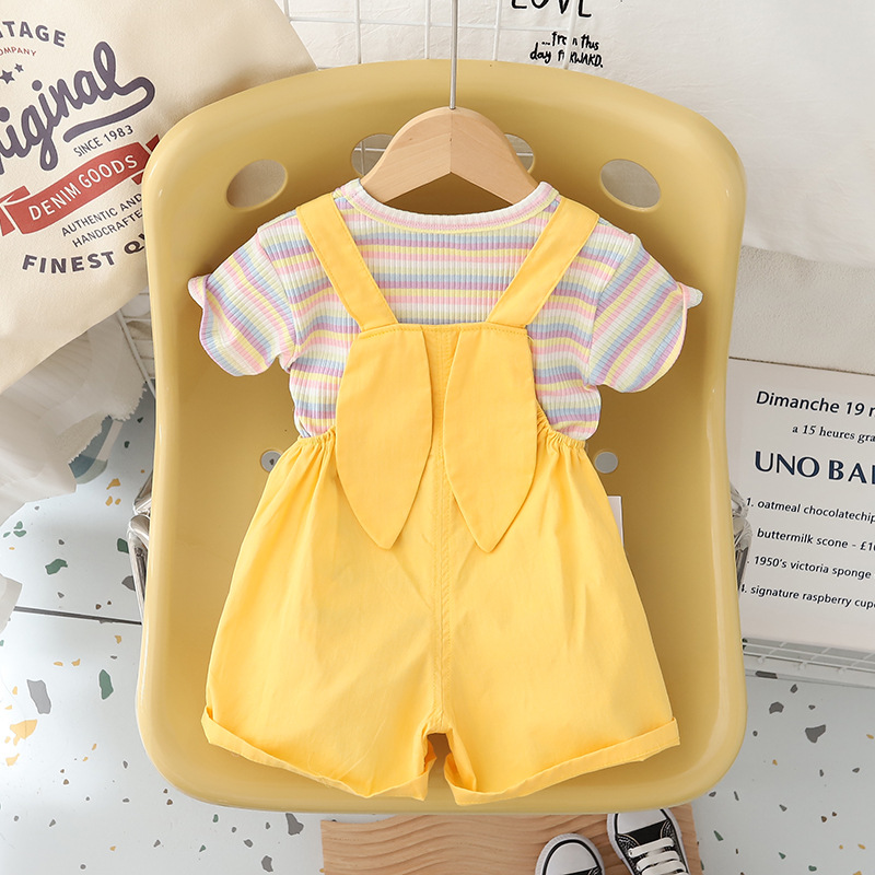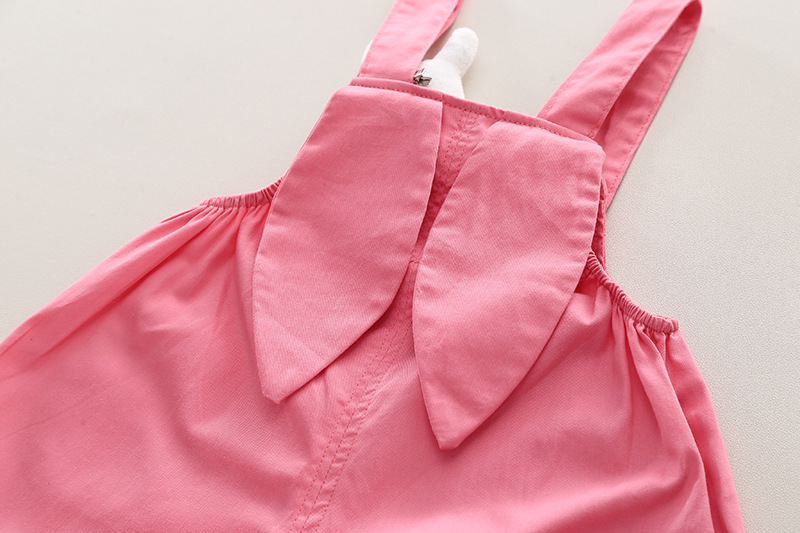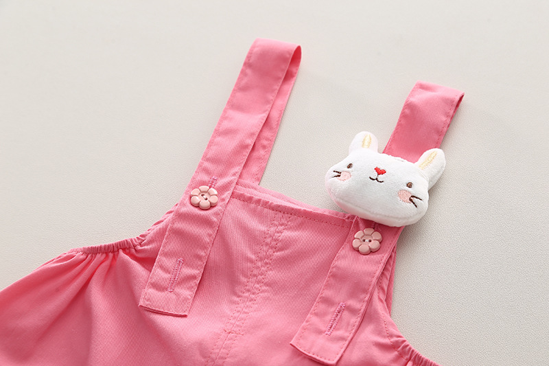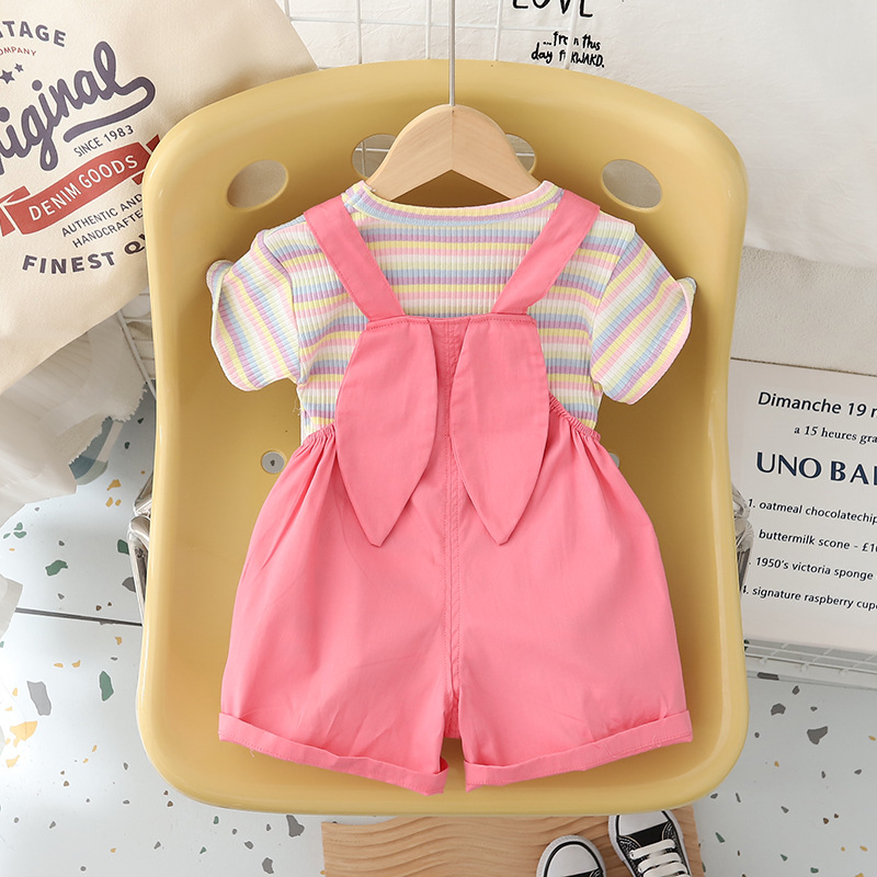 대외 무역 소녀 유아 반팔 세트 여름 새 중소형 소녀 입체 토끼 머리 스트랩 반팔 세트스토어 가기