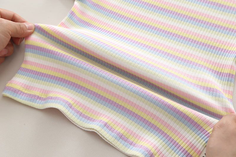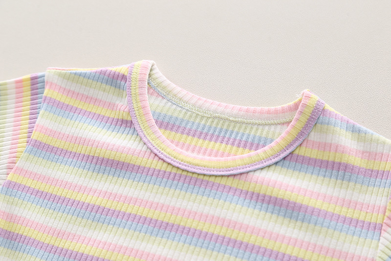 대외 무역 소녀 유아 반팔 세트 여름 새 중소형 소녀 입체 토끼 머리 스트랩 반팔 세트