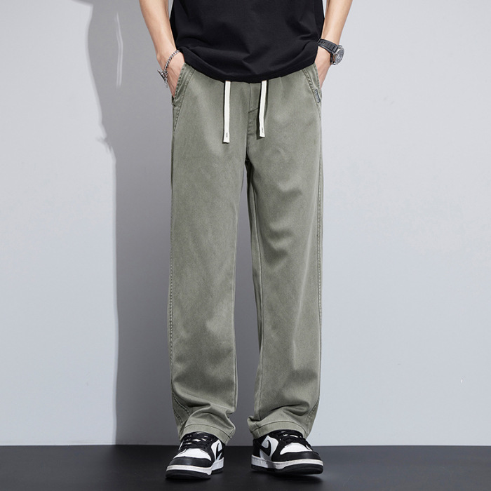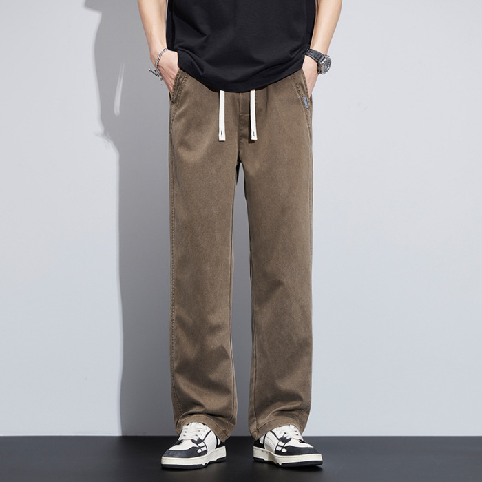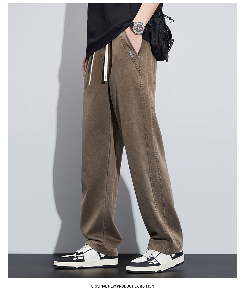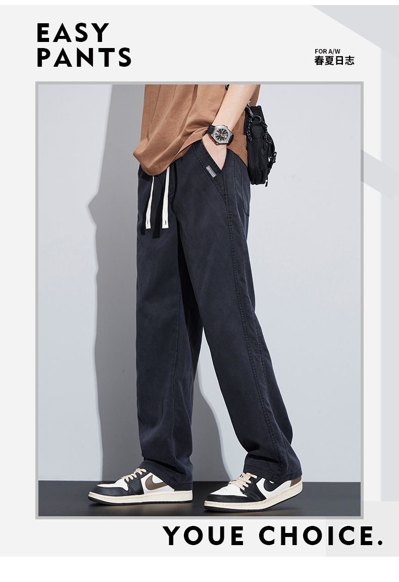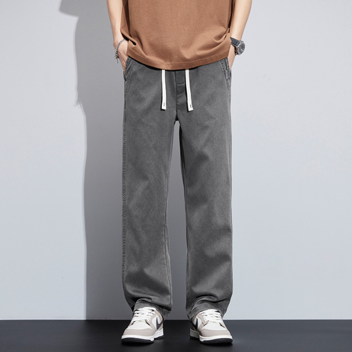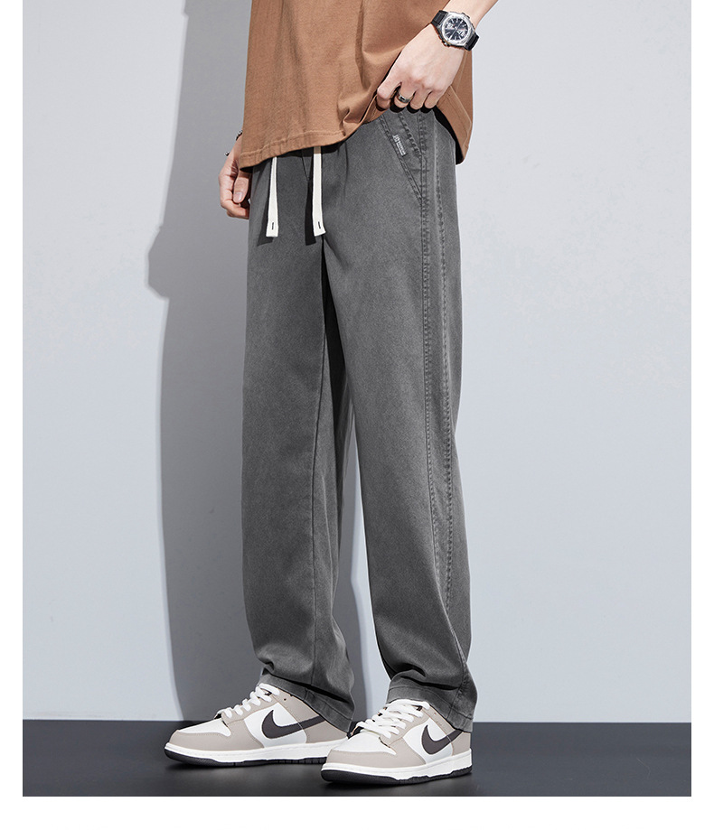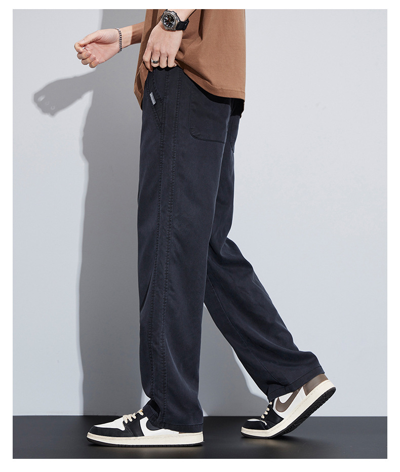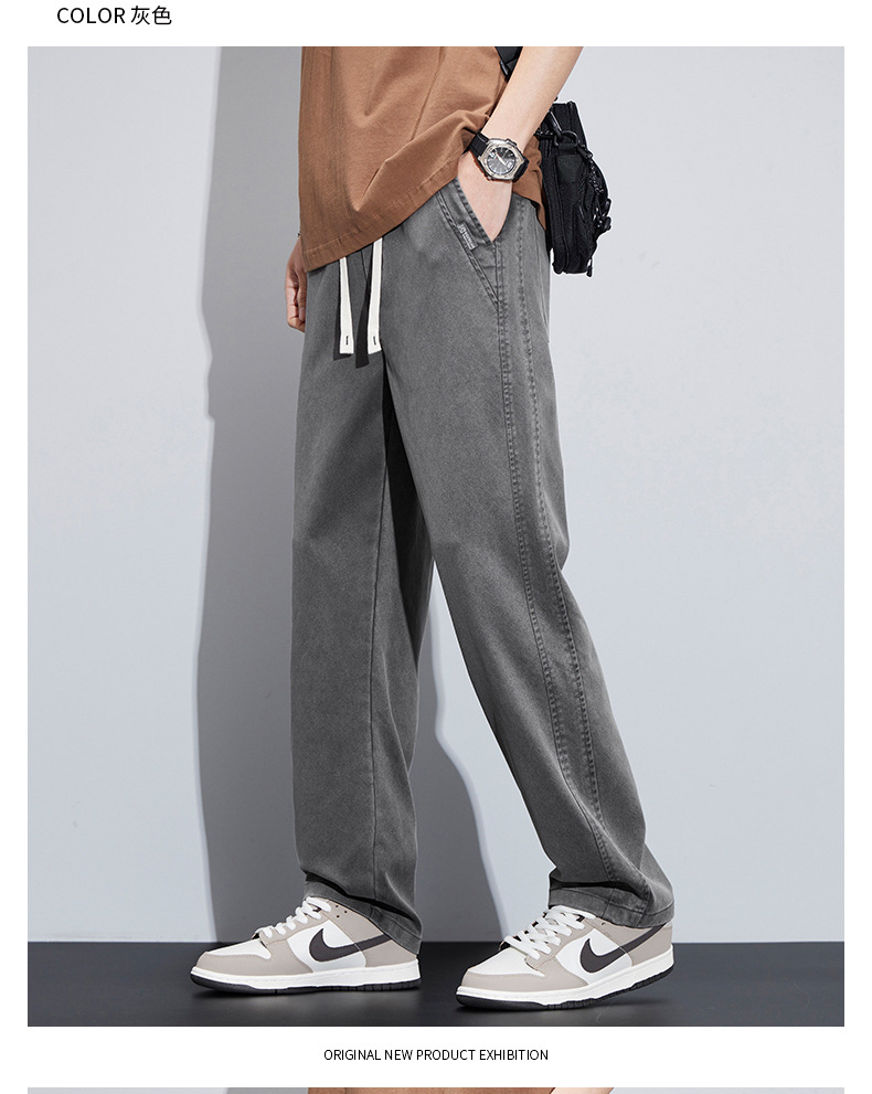 남성용 구리암모니아 실크 바지 봄 여름용 회색 드레이프 효과 큰 사이즈 긴바지 스트레이트 루즈핏 캐주얼 바지스토어 가기
