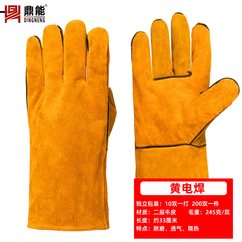 • 노란색 전기 소가죽 용접 장갑 (검은 안감)