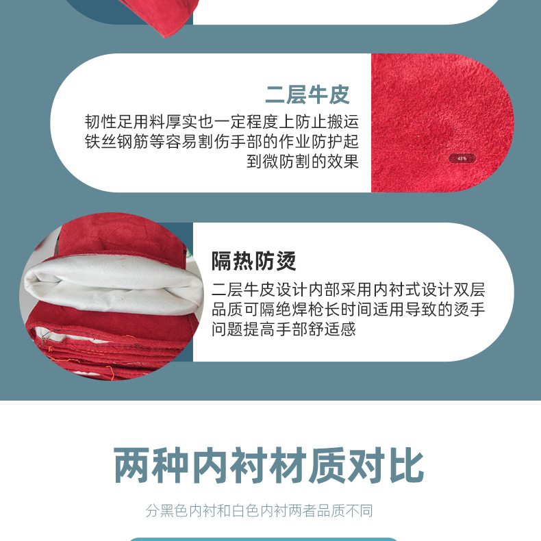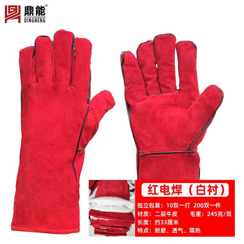 • 빨간 소가죽 용접 장갑 (흰색 안감) 품질