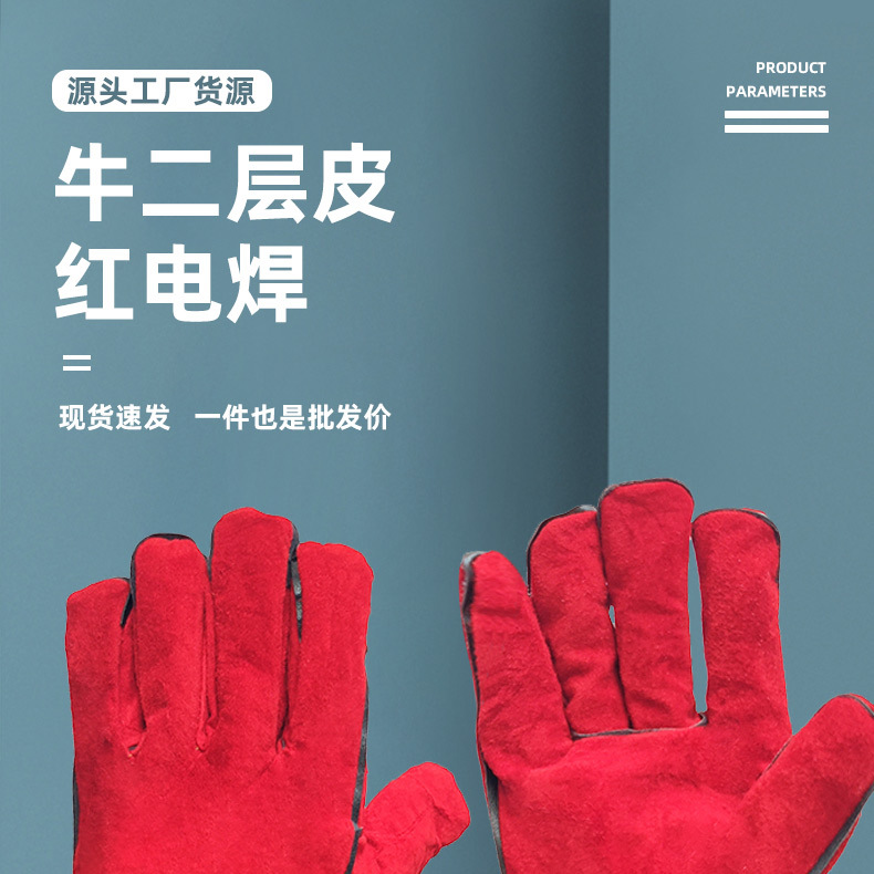 • 빨간 소가죽 용접 장갑 (검은 안감)