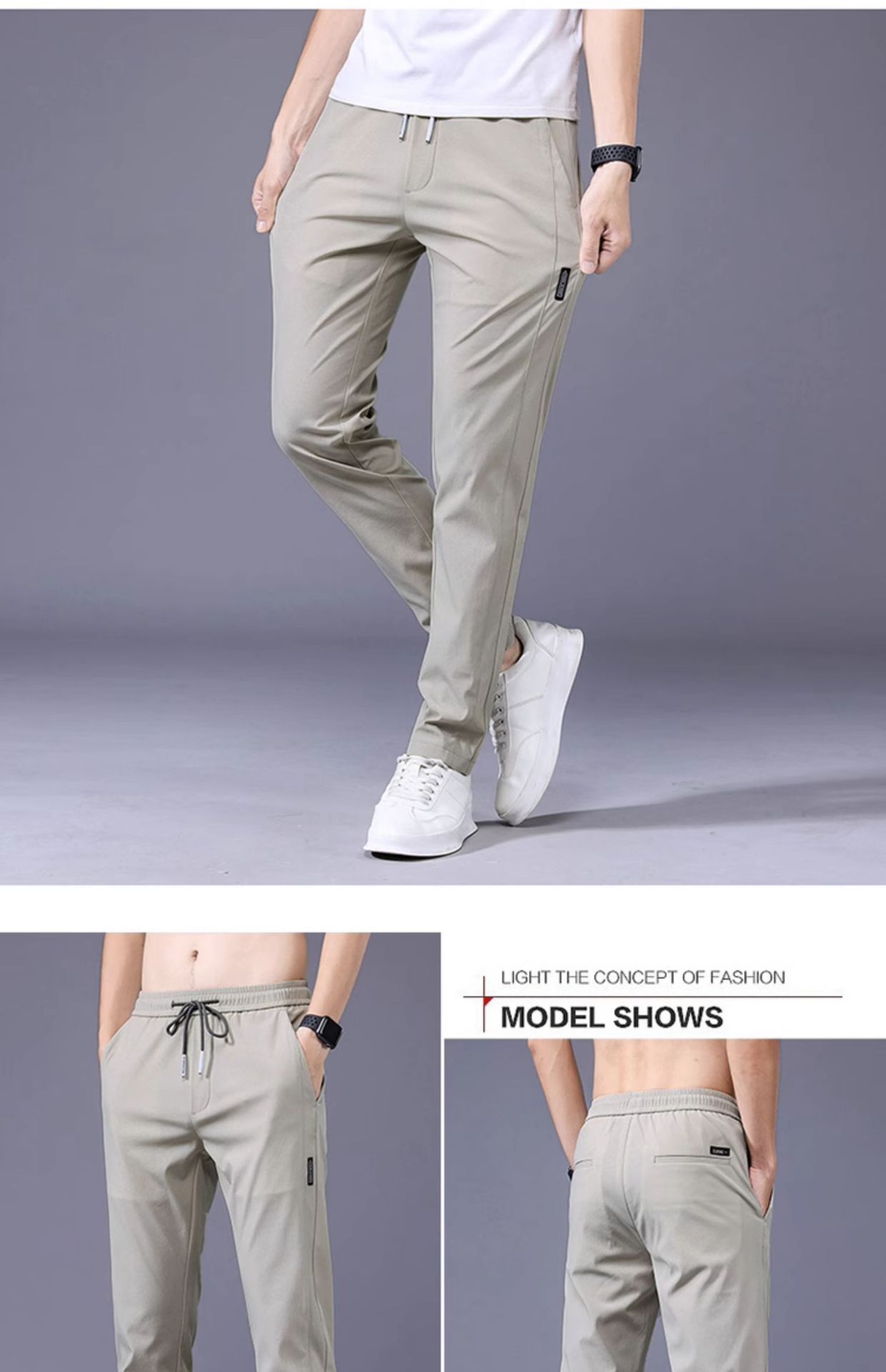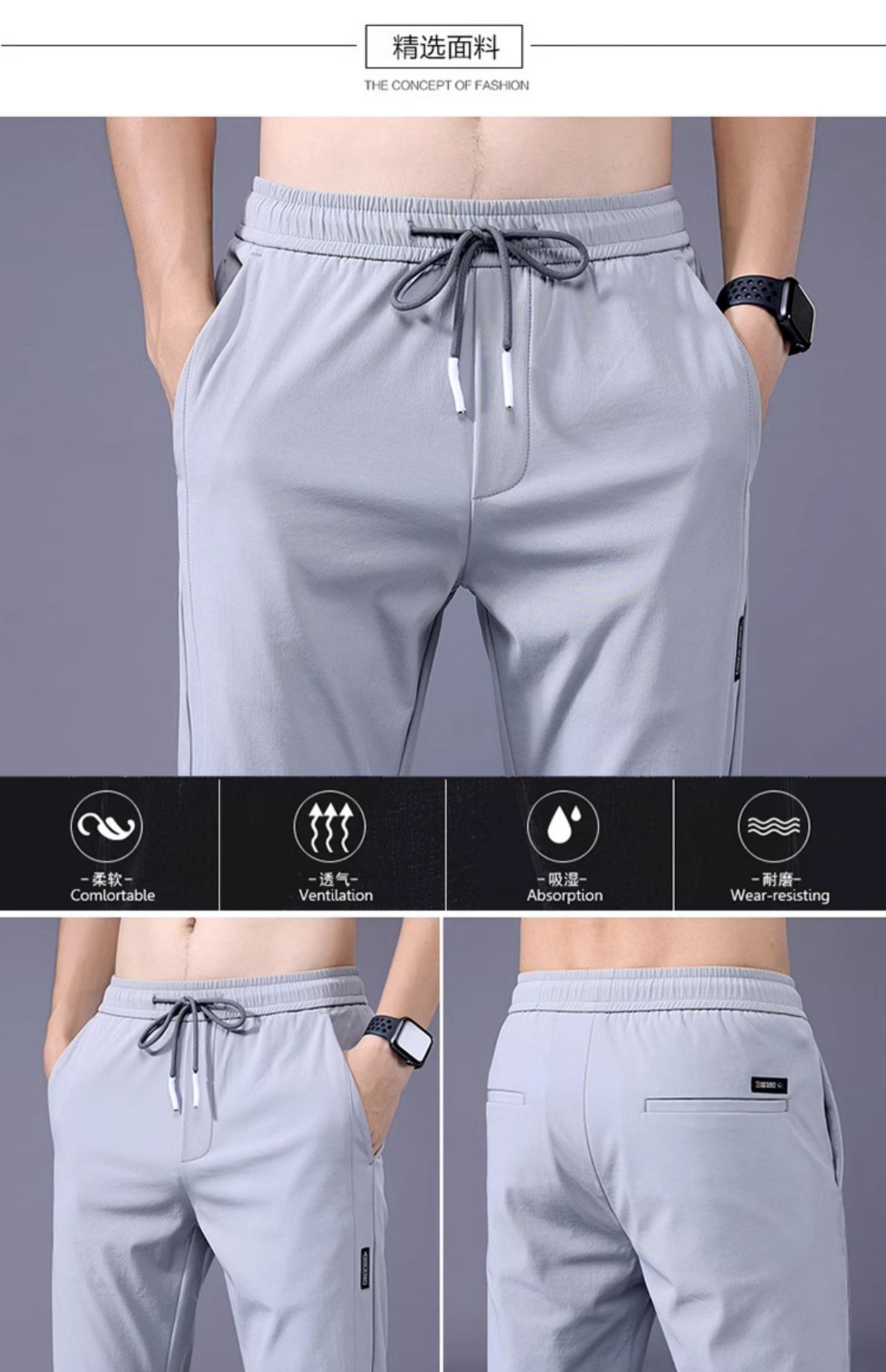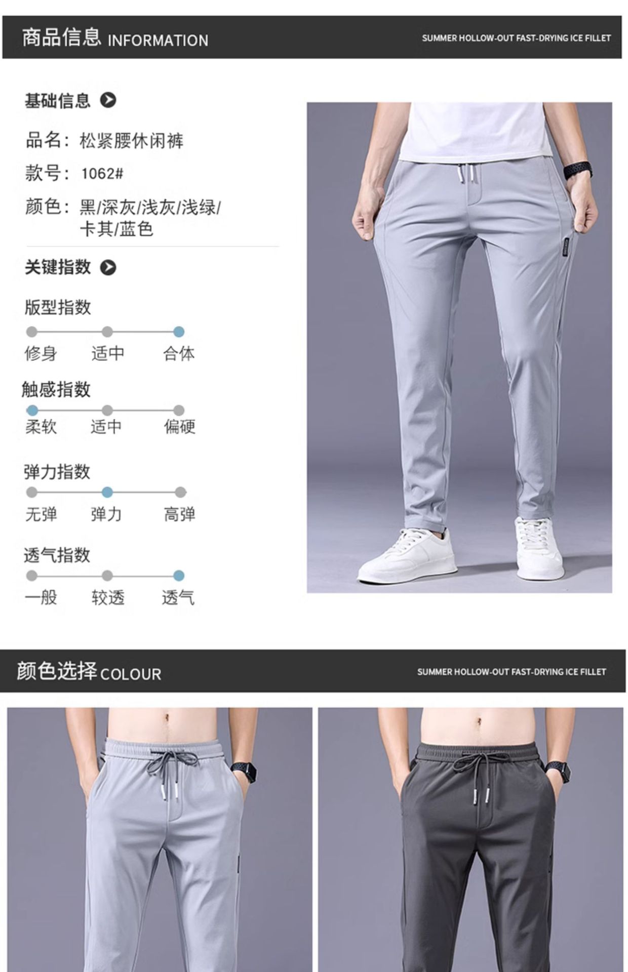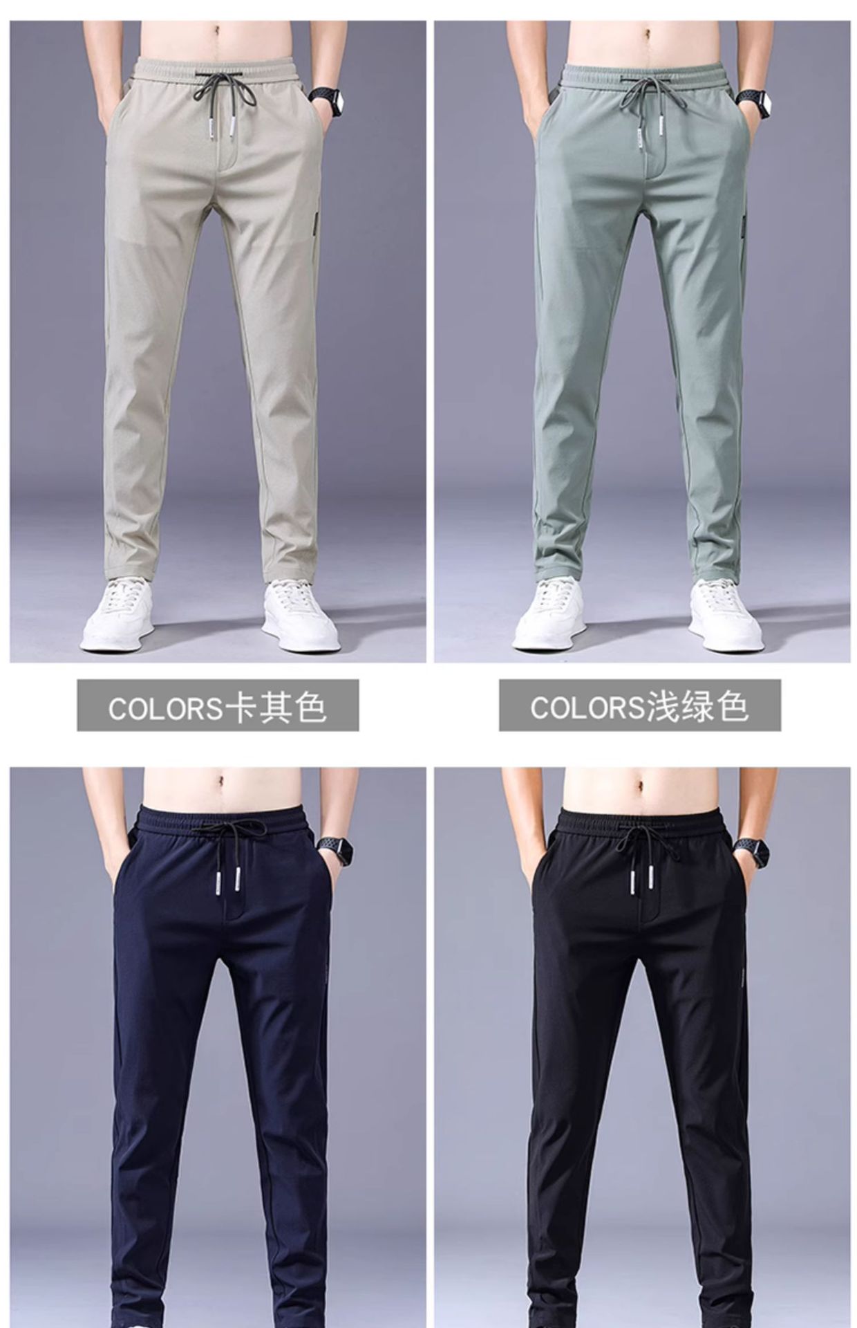 2024 새로운 여름 아이스 실크 캐주얼 긴 바지 남자 스트레이트 느슨한 봄과 가을 바지 남자 슬림 핏 스포츠 바지스토어 가기