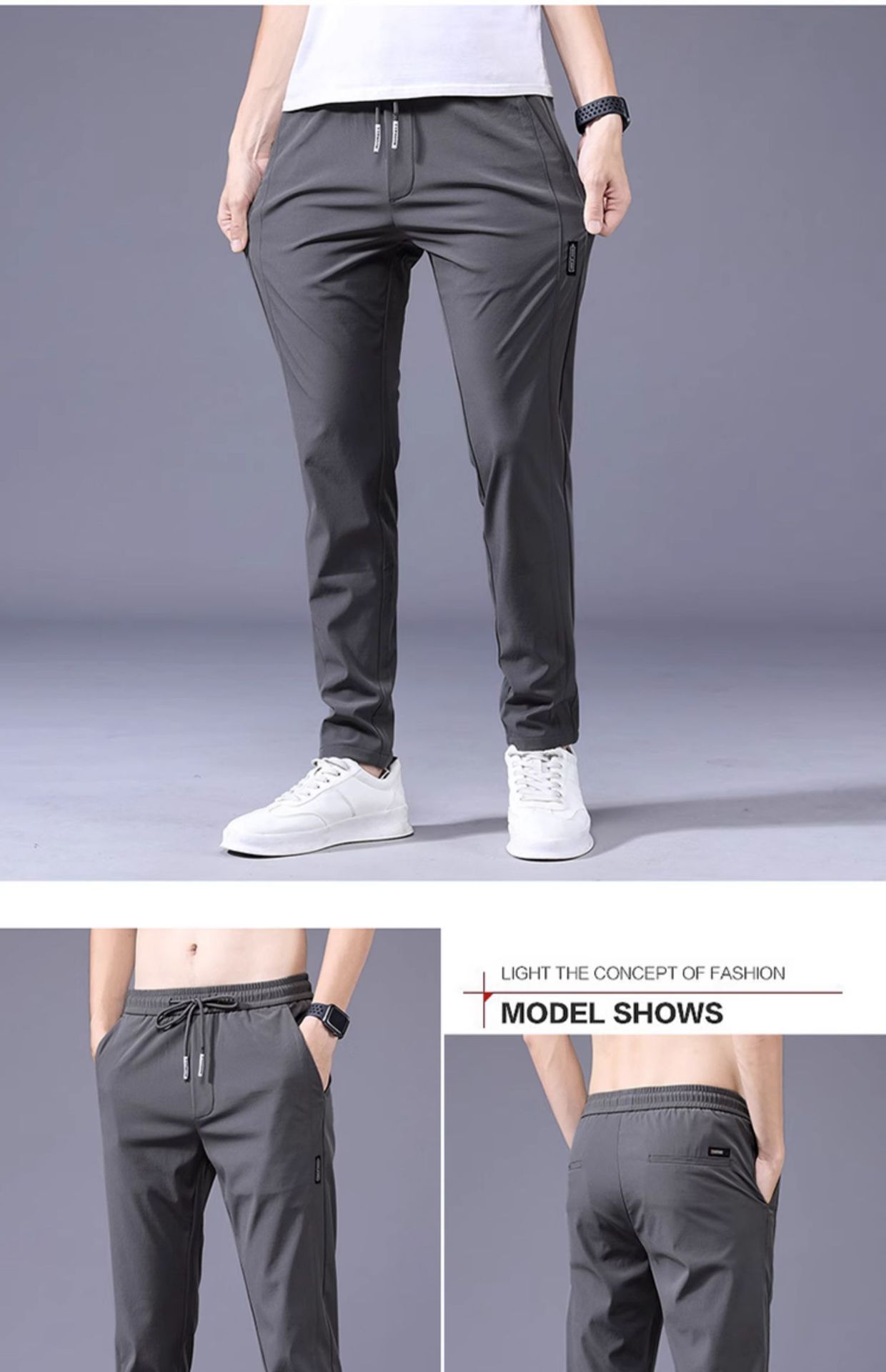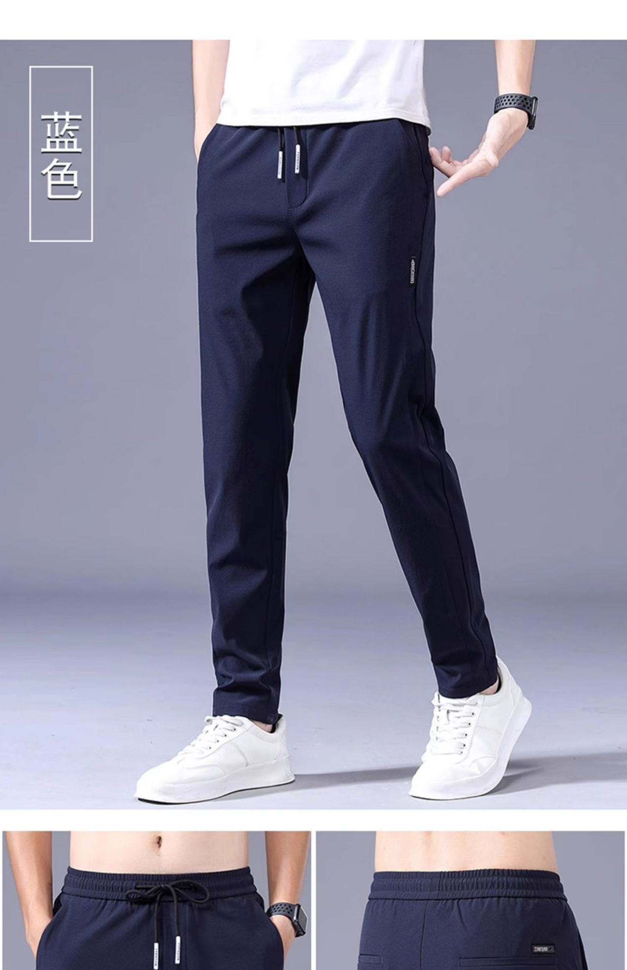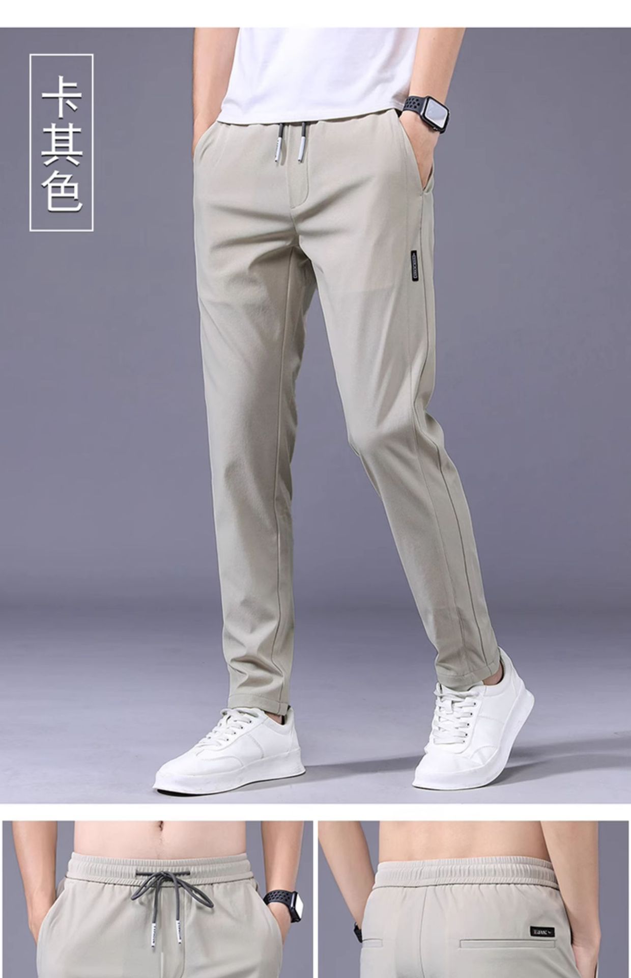 2024 새로운 여름 아이스 실크 캐주얼 긴 바지 남자 스트레이트 느슨한 봄과 가을 바지 남자 슬림 핏 스포츠 바지스토어 가기