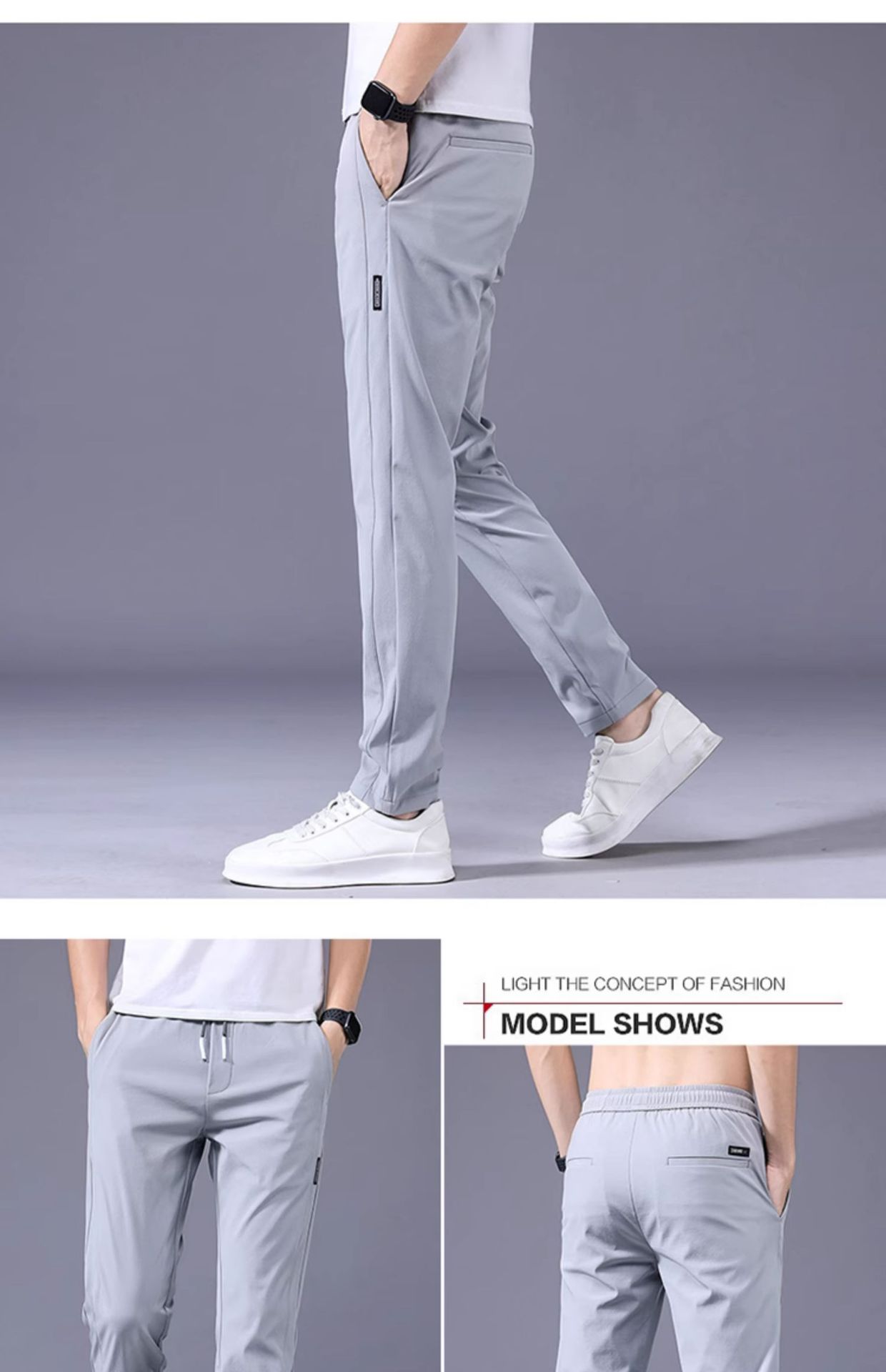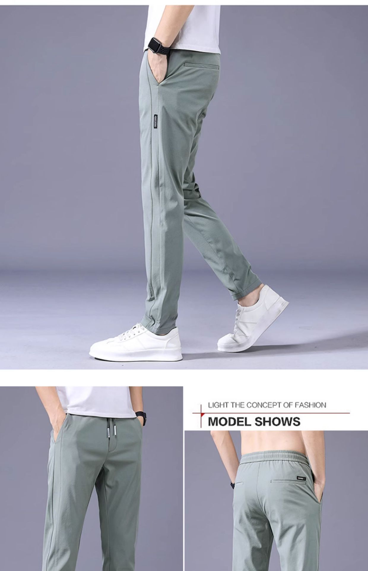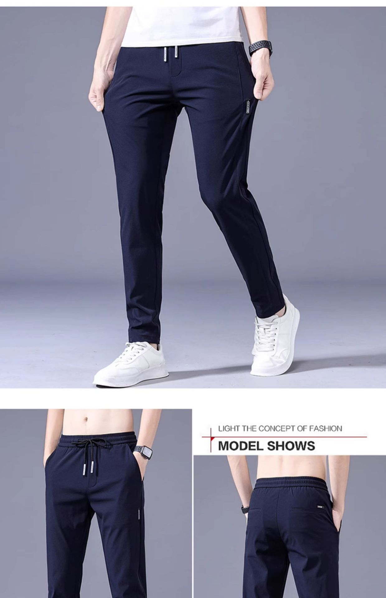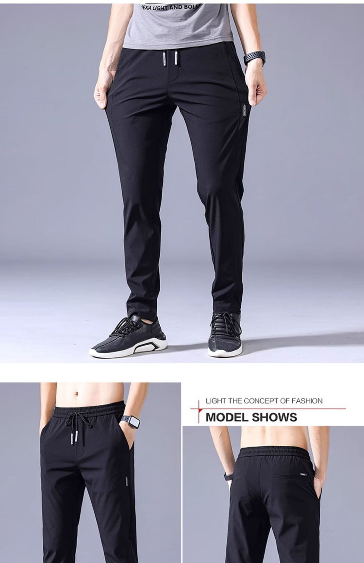 2024 새로운 여름 아이스 실크 캐주얼 긴 바지 남자 스트레이트 느슨한 봄과 가을 바지 남자 슬림 핏 스포츠 바지스토어 가기