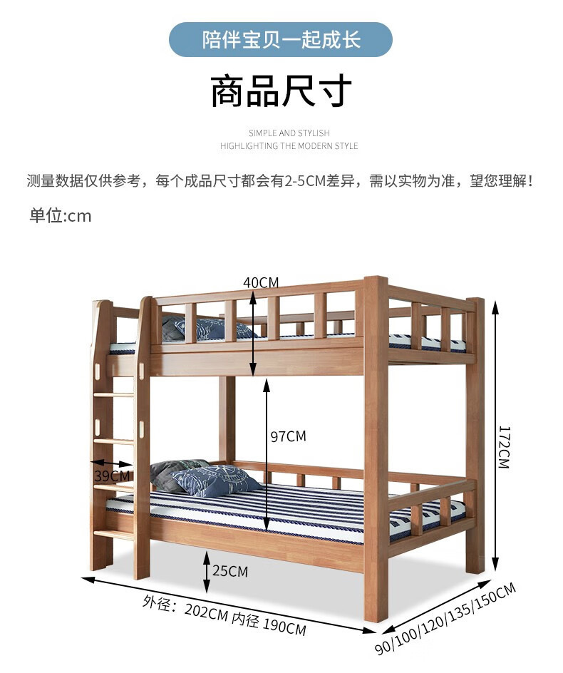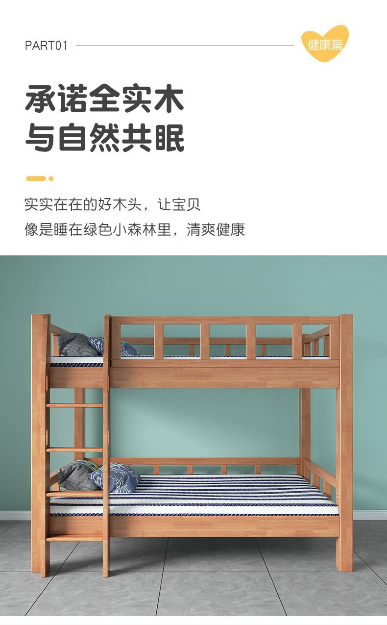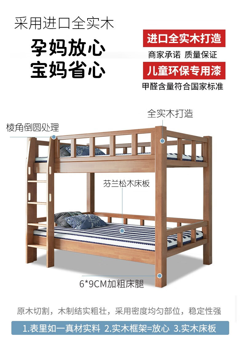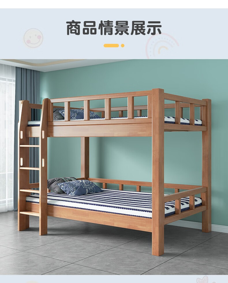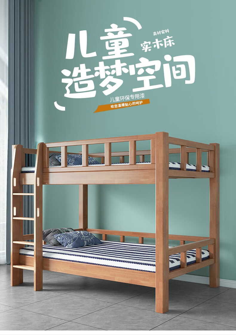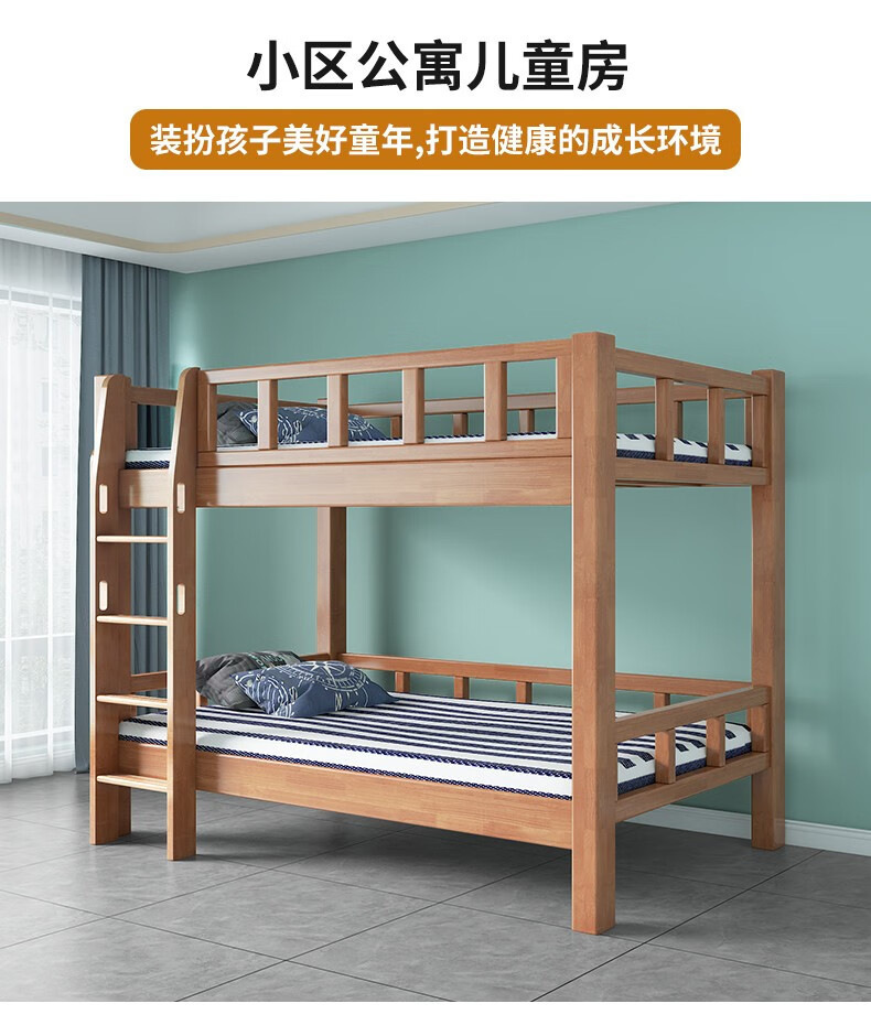 원목 고무나무 이층침대 소형 아파트 어린이용 이층침대 동폭 기숙사 공사용 침대 쌍둥이용