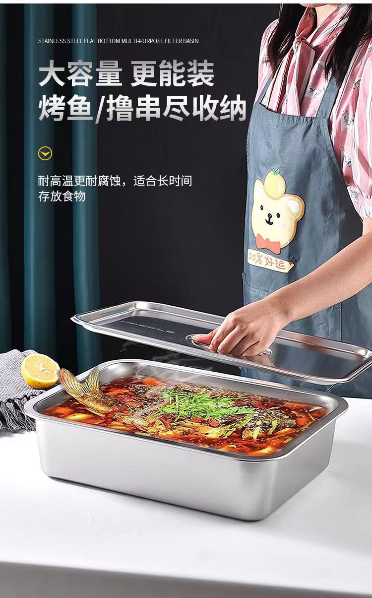 304 스테인리스 고양이 화장실 직사각형 평평한 바닥 트레이 깊은 밥그릇 판매용 재료 분류 용기 뚜껑 포함스토어 가기