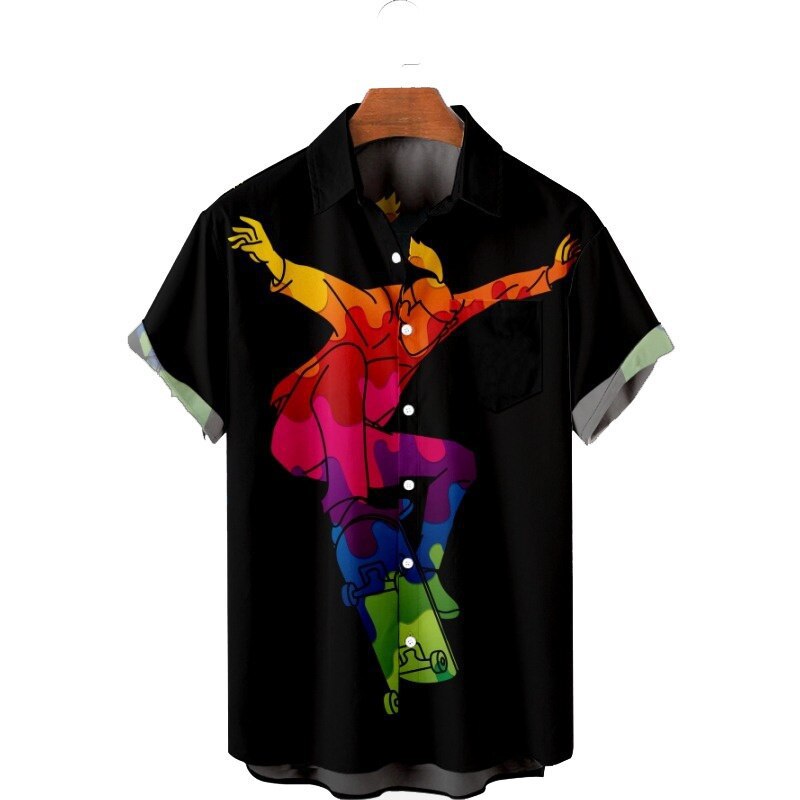 유럽과 미국의 2024 대외 무역 남자 봄 새로운 디지털 인쇄 하와이 옷깃 짧은 소매 캐주얼 비치 셔츠 남자