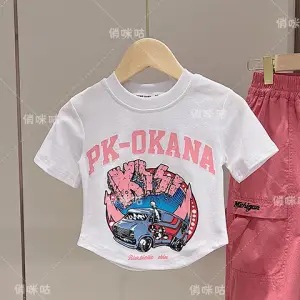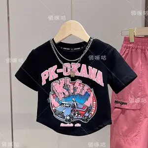 2024 신상 소녀 여름 세트 여성의 보물 여름 반팔 공예 바지 서양식 투피스 어린이 여름 티셔츠스토어 가기