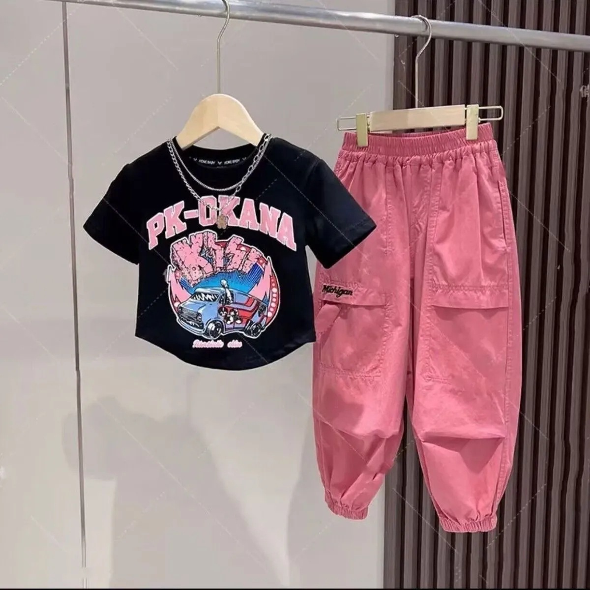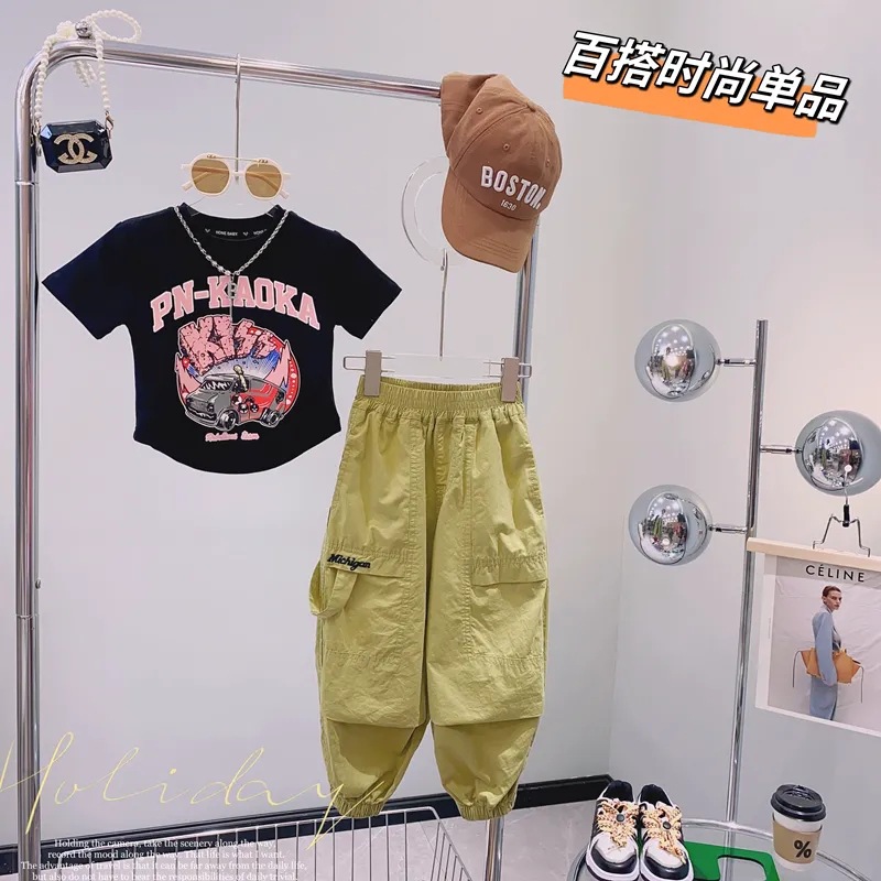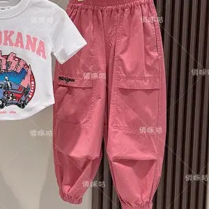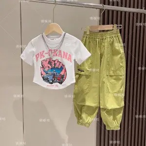 2024 신상 소녀 여름 세트 여성의 보물 여름 반팔 공예 바지 서양식 투피스 어린이 여름 티셔츠