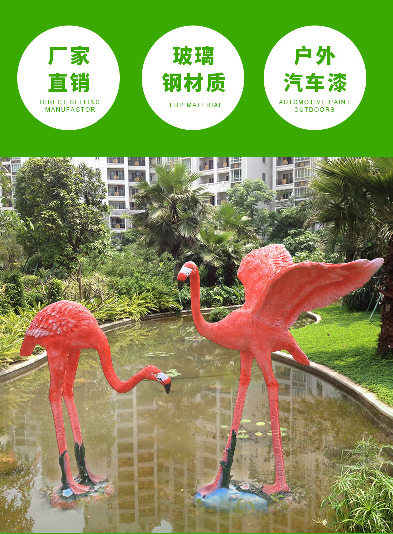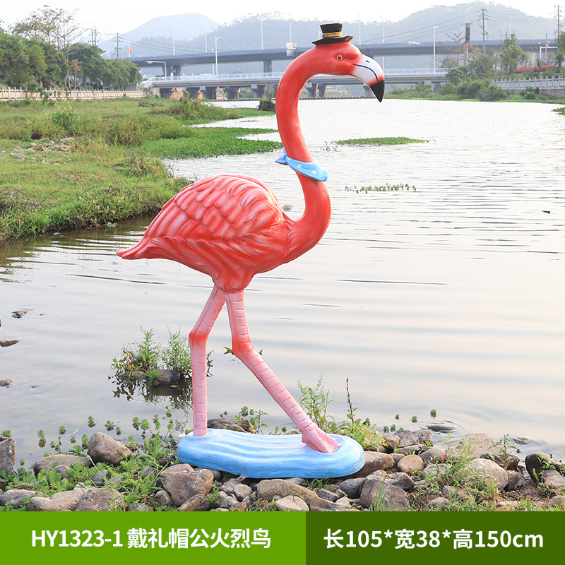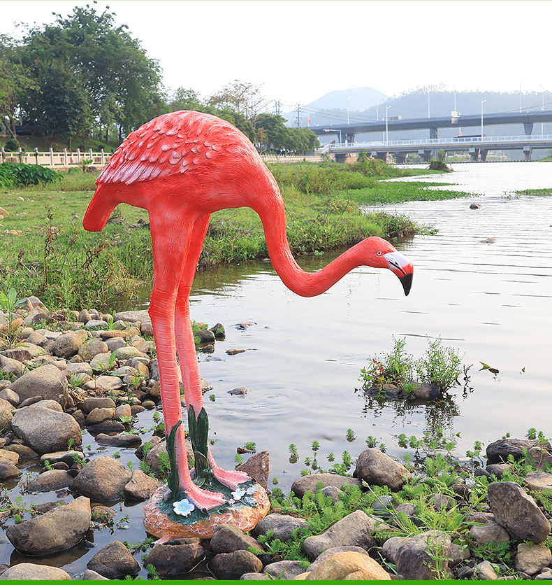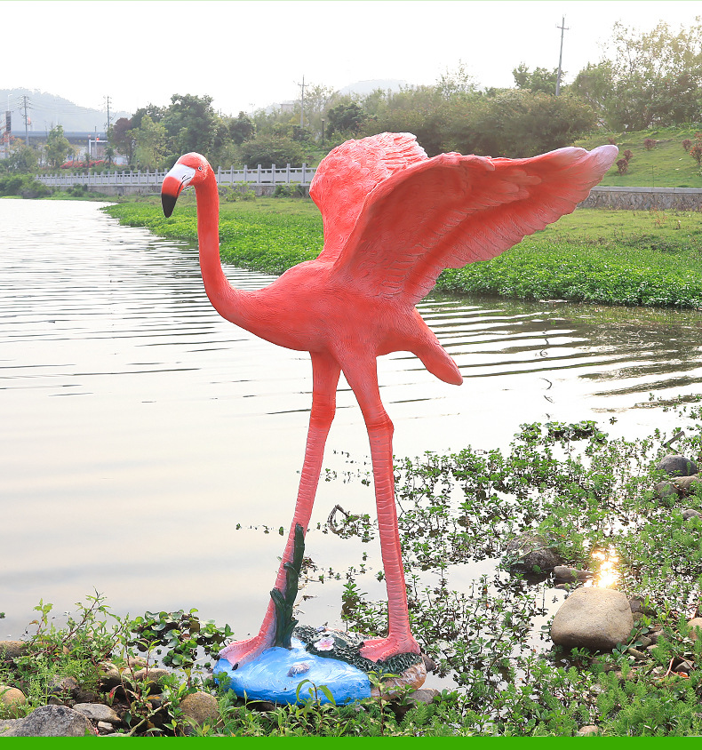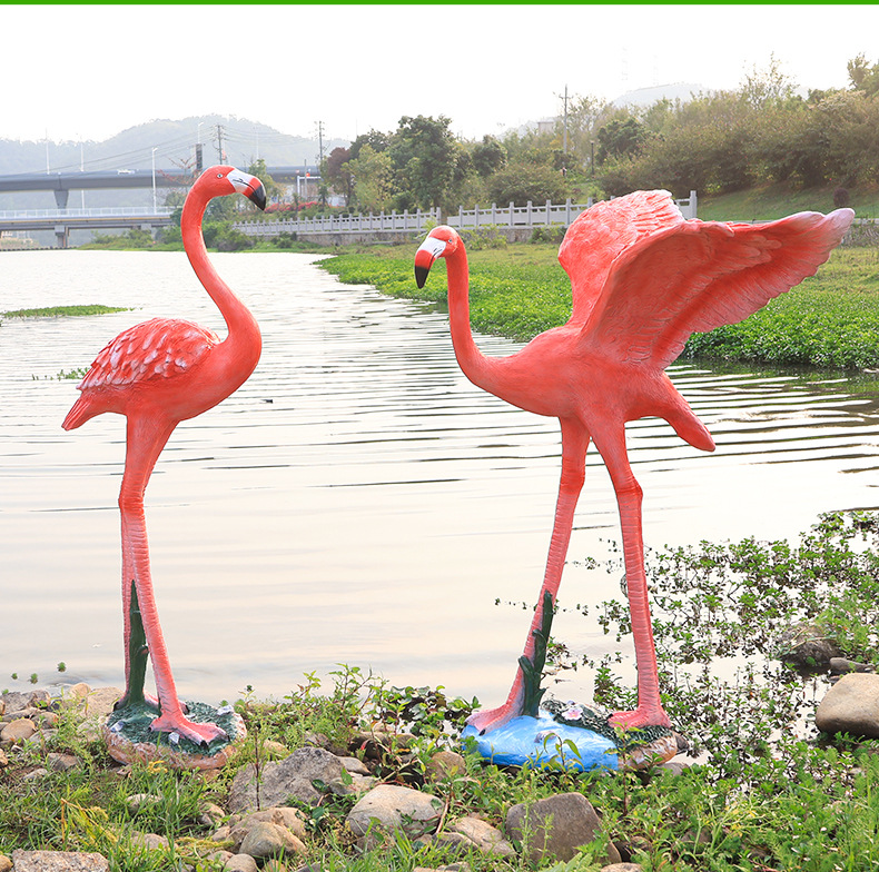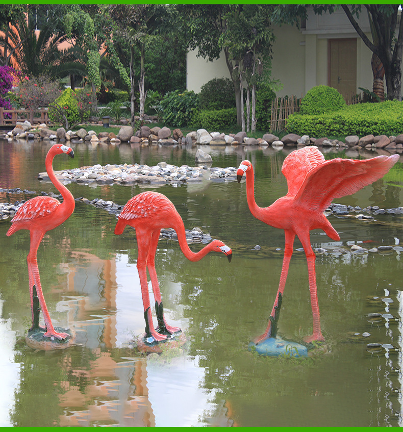 야외 풍경 장식 시뮬레이션 플라밍고 커뮤니티 아트리움 수경 어업 조경 유리 섬유 강화 플라스틱 동물 조각스토어 가기