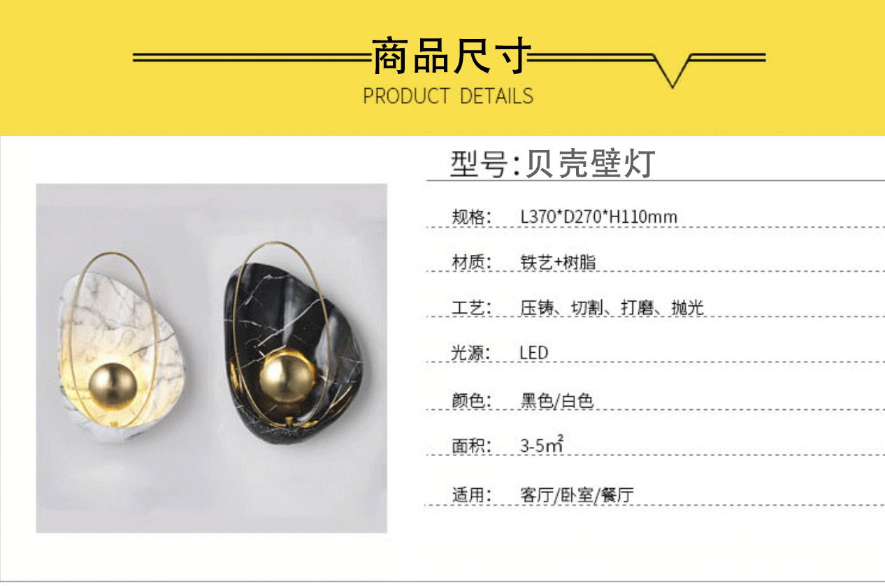 북유럽 스타일 조개 벽등 침대 옆 고급스러운 창의적 거실 배경 벽 장식 분위기 복도 현관 실내 벽등