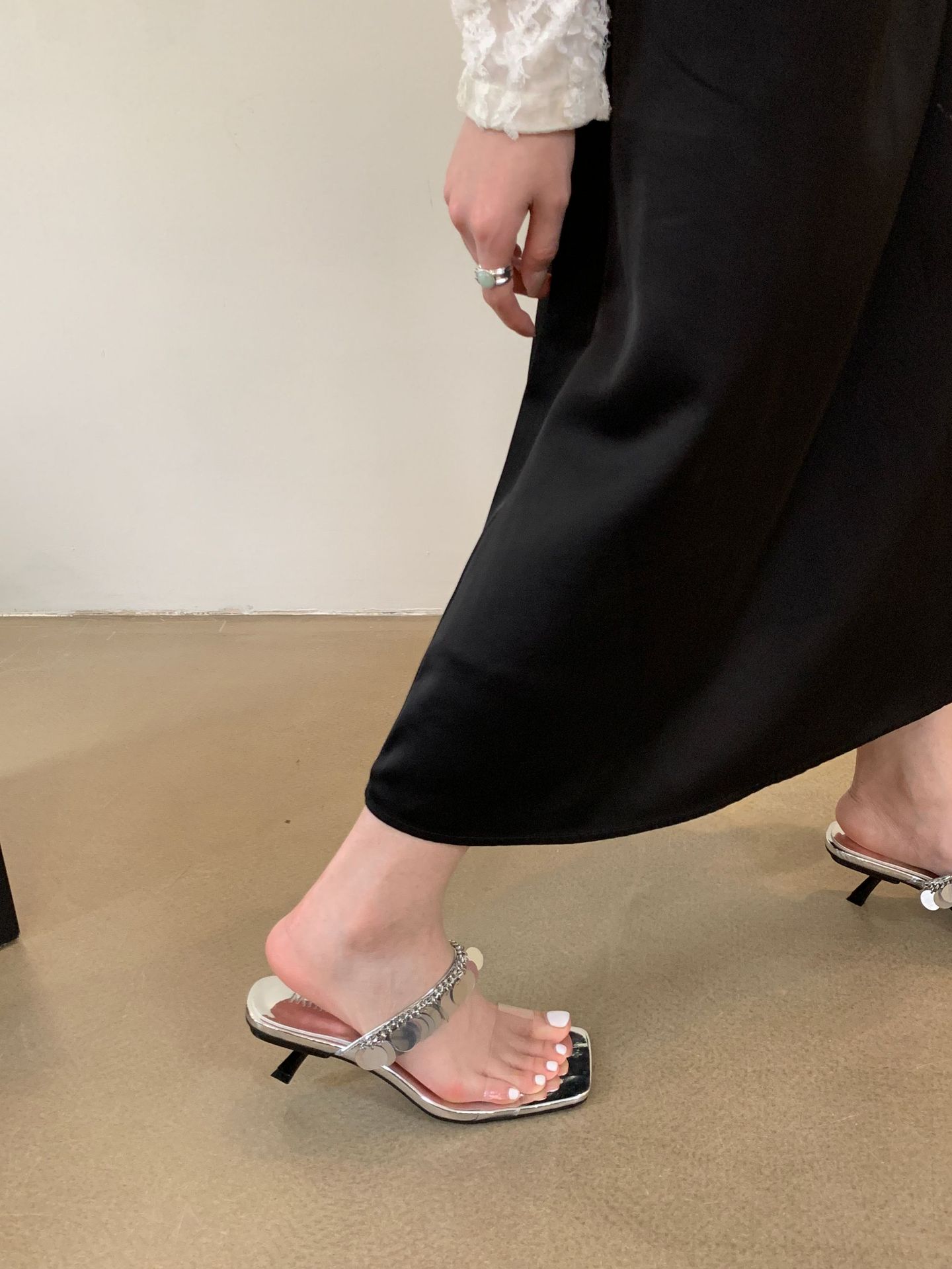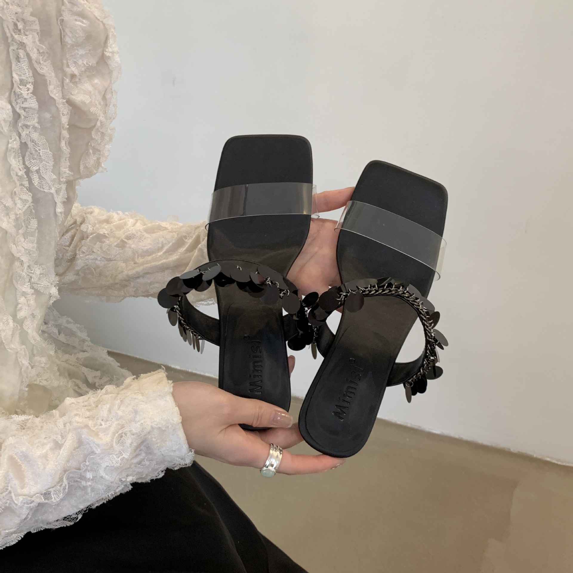 2024 새로운 스타일 스퀘어 토 여성용 여성용 샌들, 주름 세트 발가락 투명 얇은 뒤꿈치 외부 착용 반 드래그스토어 가기