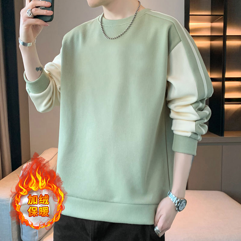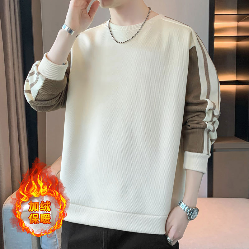 3 개의 바 풀 스트립 라운드 넥 스웨터 남자 봄과 가을 새로운 유행 브랜드 올 매치 루즈베이스 셔츠 스프링 플러스 지방스토어 가기