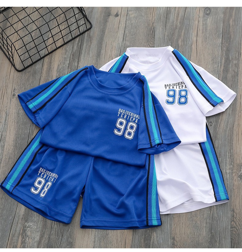 어린이 여름 운동복 메쉬 통기성 반팔 세트 어린이 인쇄 느슨한 반팔 반바지 캐주얼 볼 세트