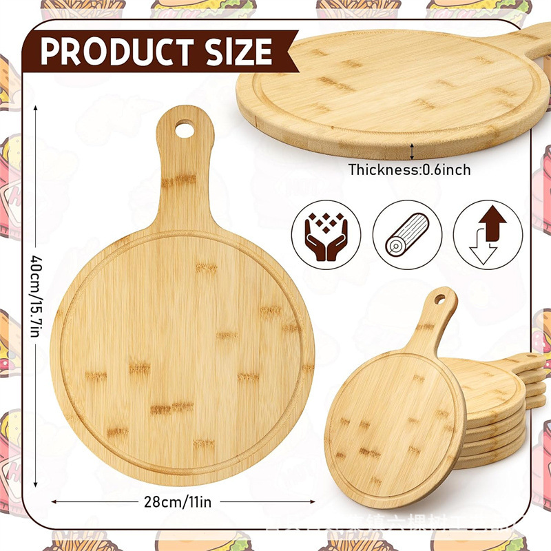 대나무 도마 주방 핸들 피자 트레이 델리 보드 스테이크 디너 플레이트 솔리드 우드 커팅 보드
