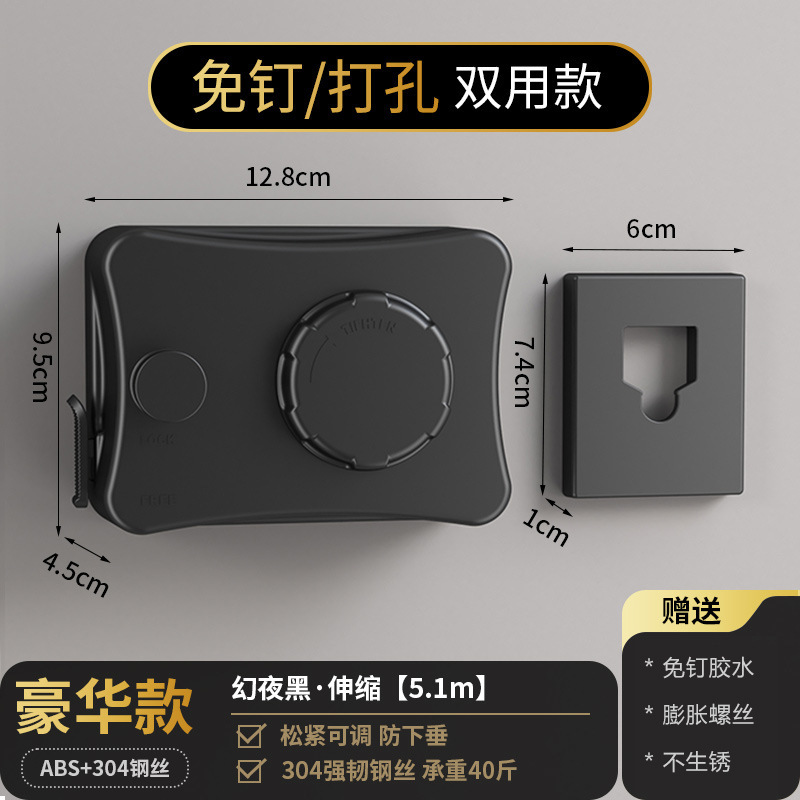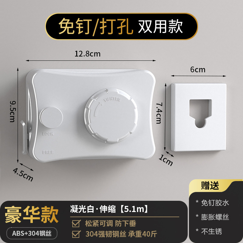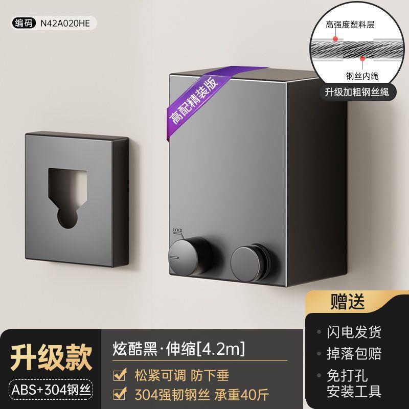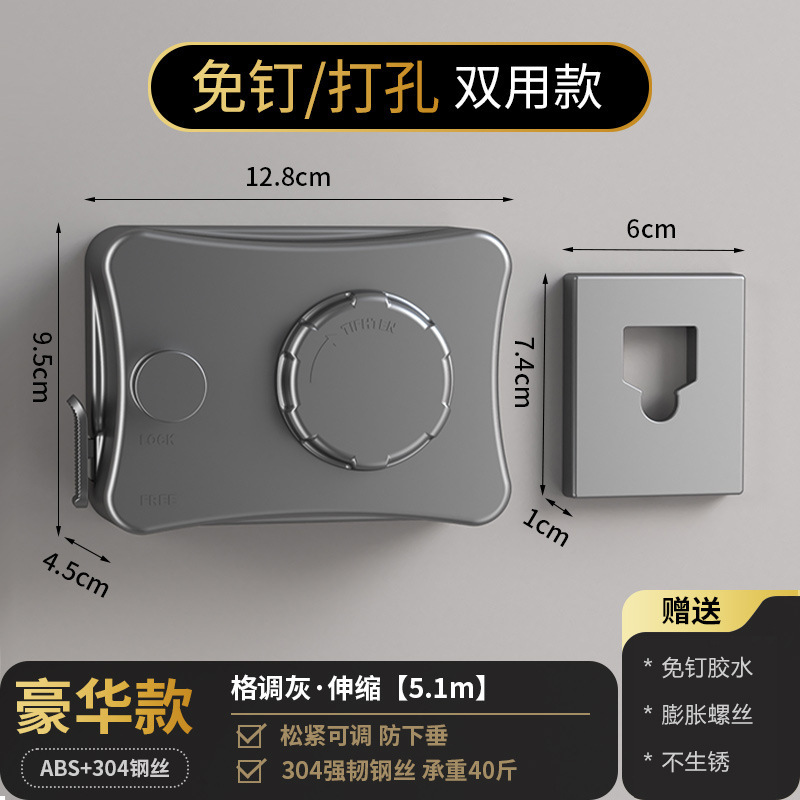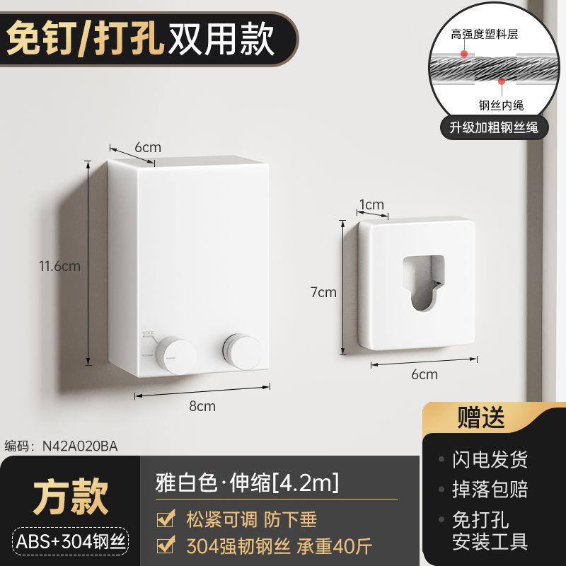 보이지 않는 Clothesline 아티팩트 로프 실내 펀치없는 화장실 망원경 발코니 와이어 수축 랙