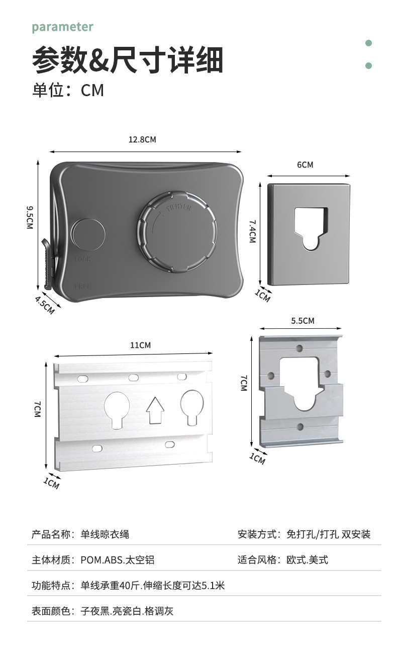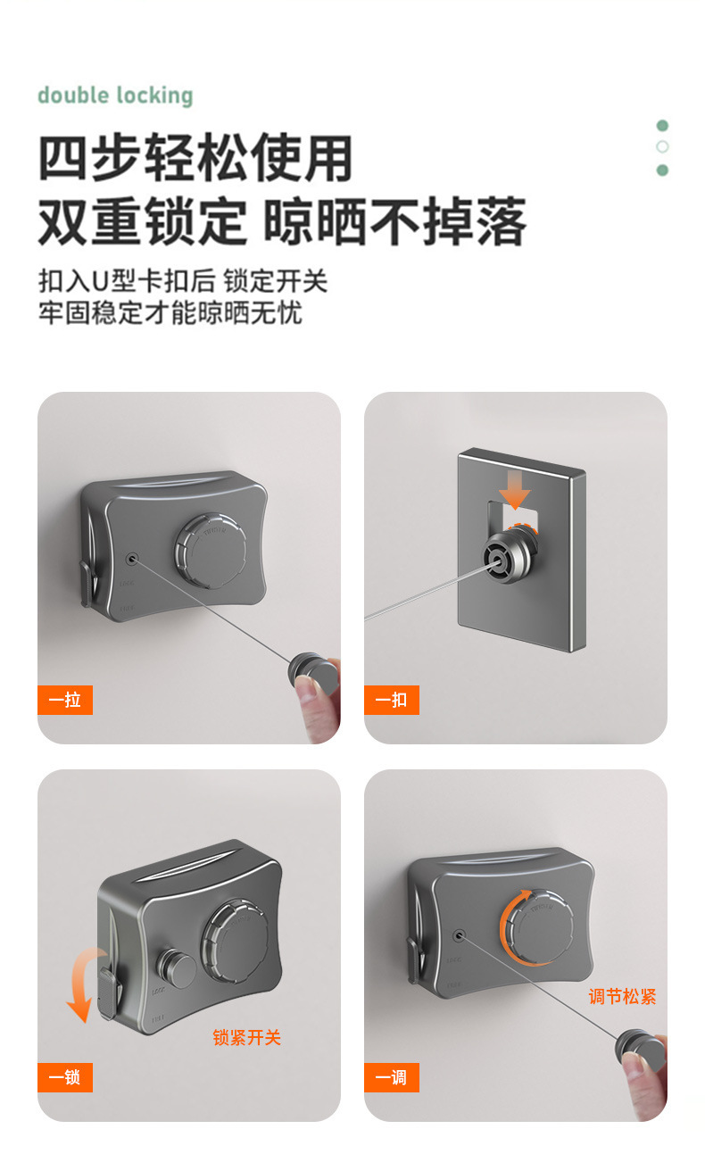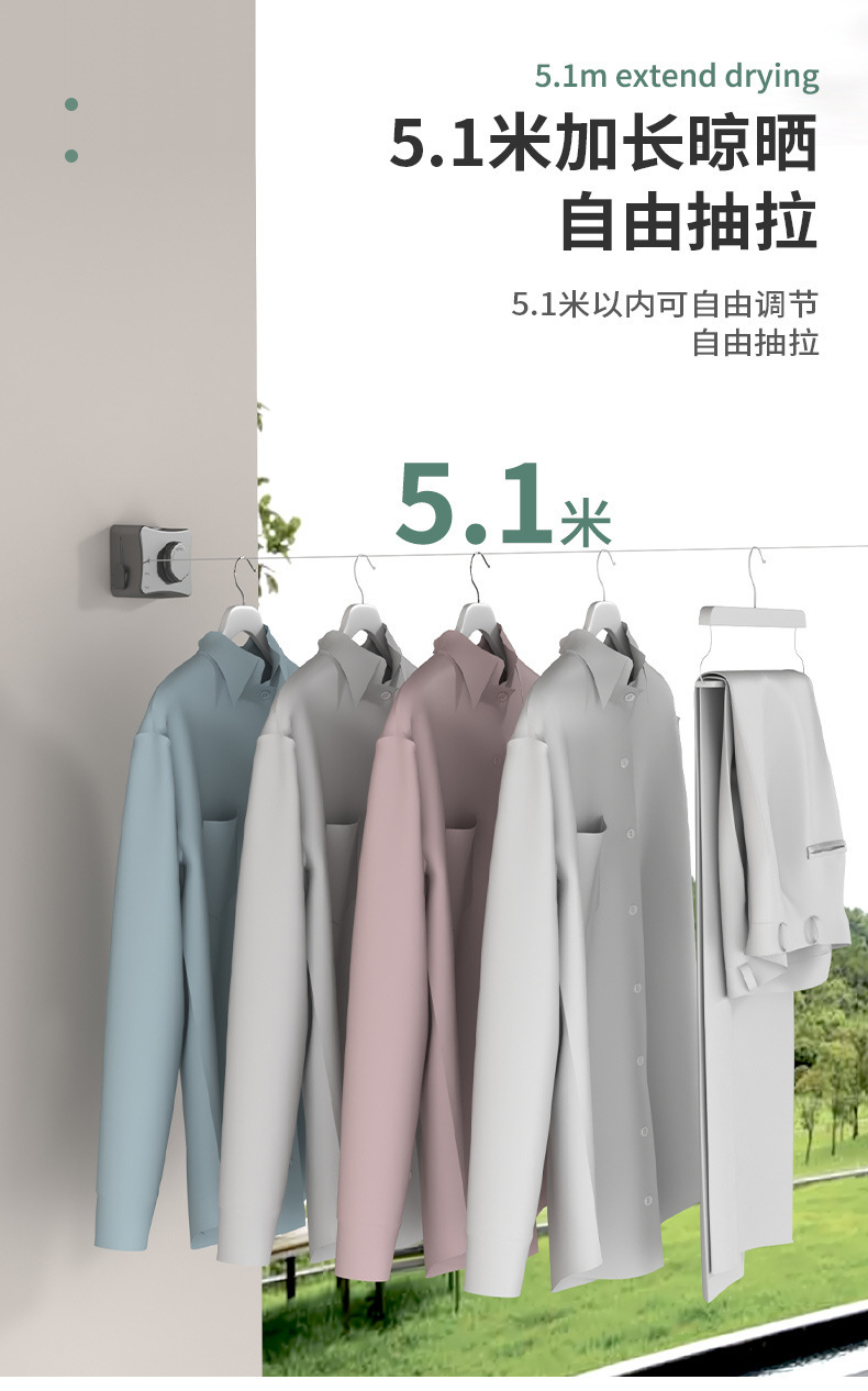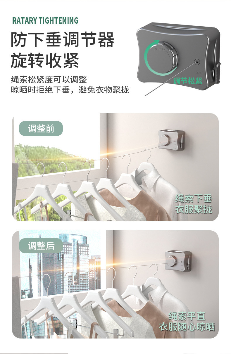 보이지 않는 Clothesline 아티팩트 로프 실내 펀치없는 화장실 망원경 발코니 와이어 수축 랙