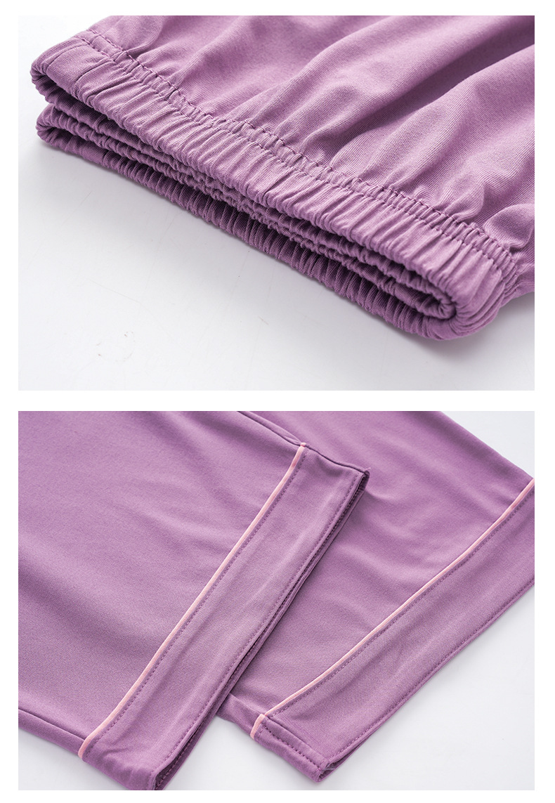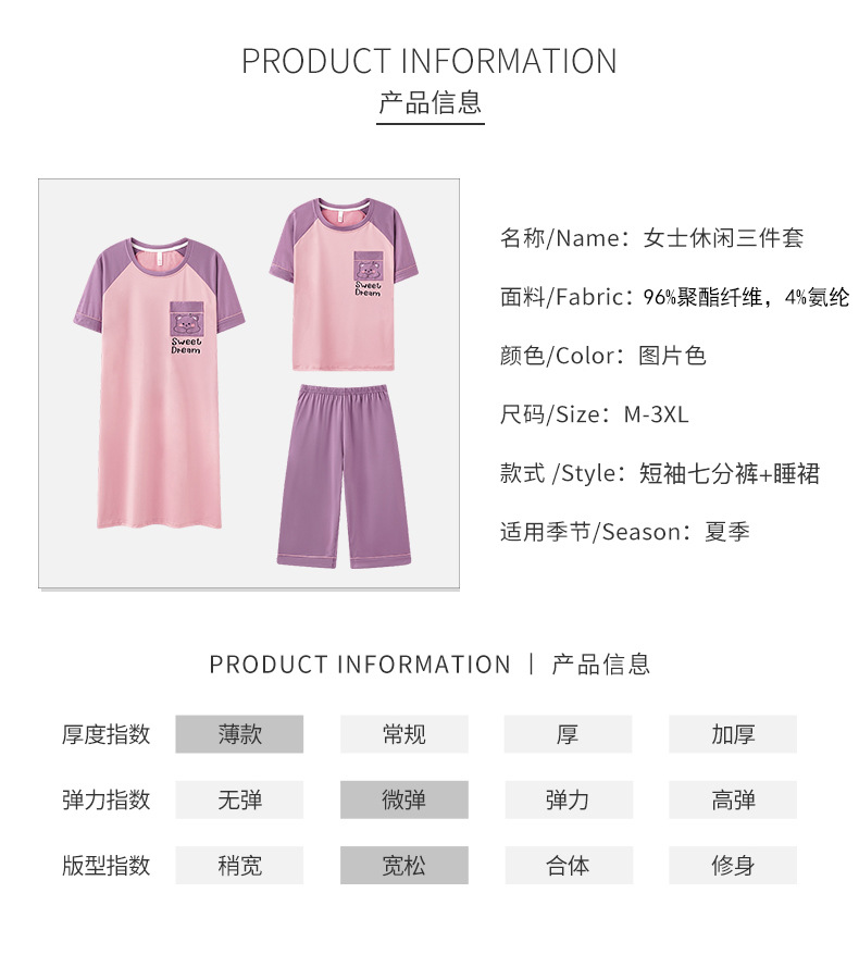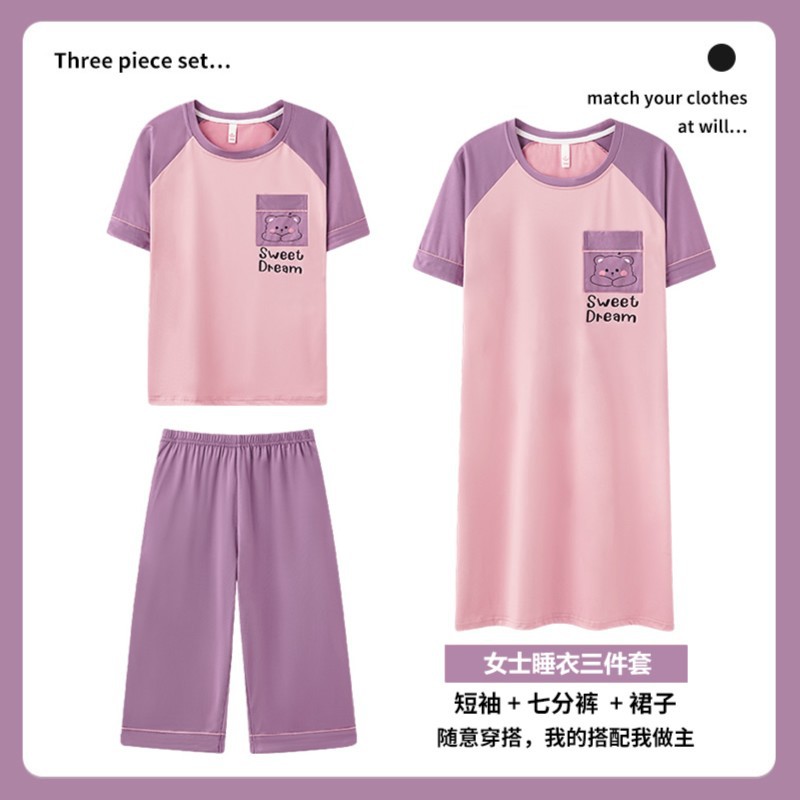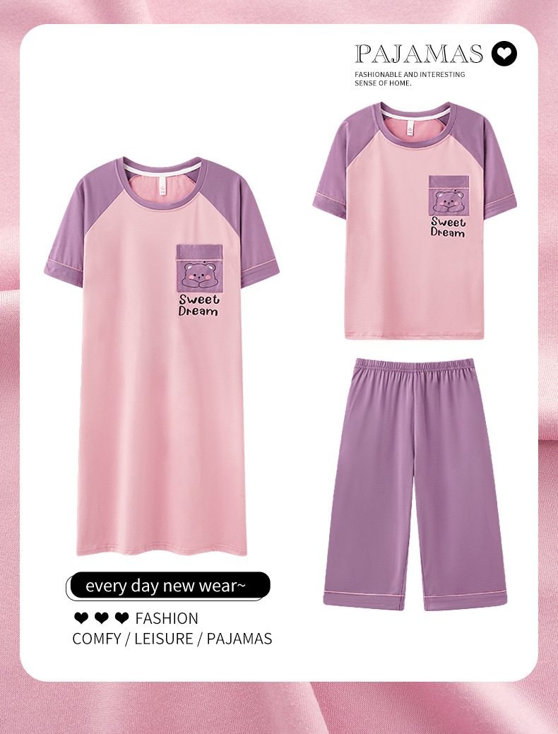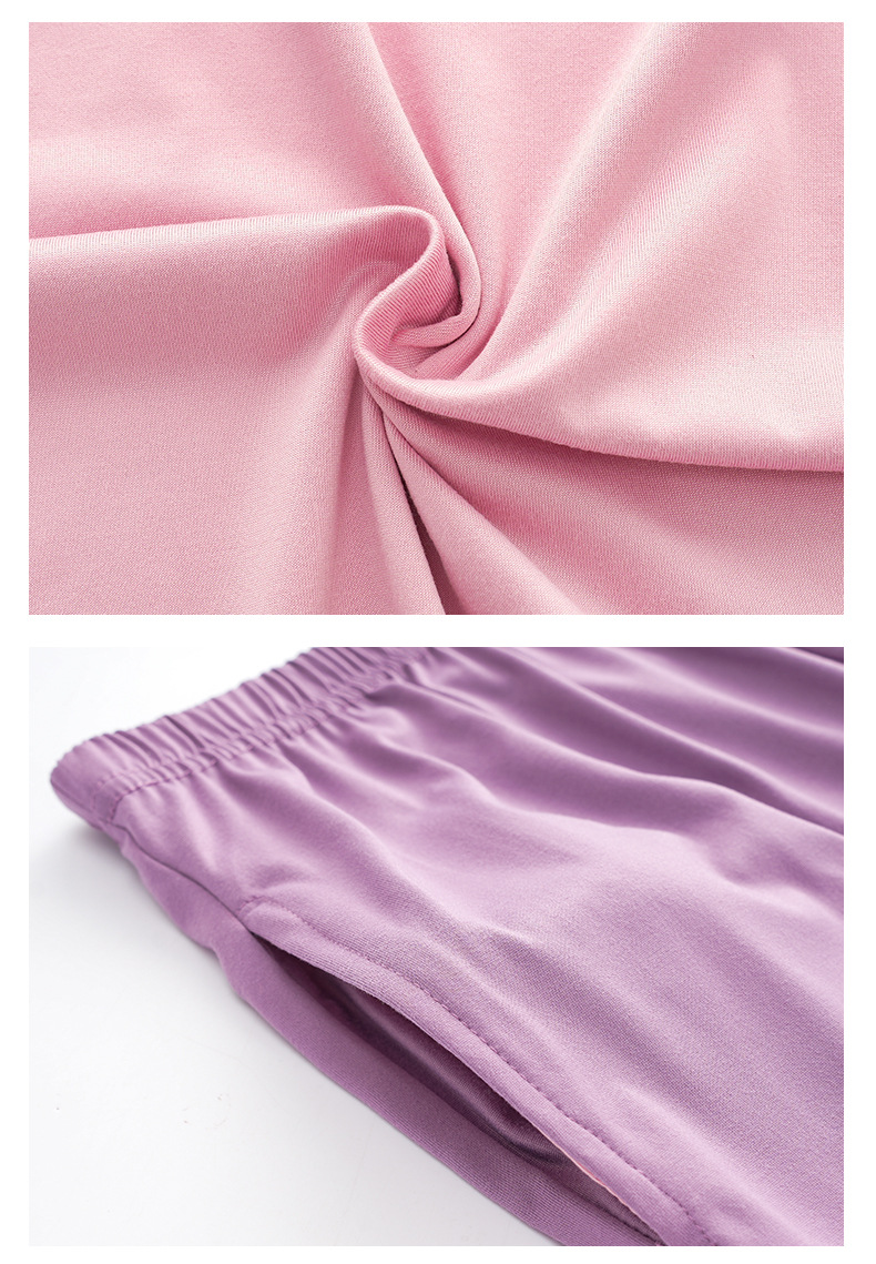 여름 풀오버 여자 잠옷 핑크 얇은 스트레치 반팔 자른 바지 여성 홈 옷 세트 610