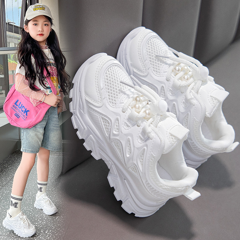 소녀 스포츠 신발 봄과 가을 새로운 메쉬 통기성 중대형 어린이 캐주얼 신발 소녀 토레 신발 어린이 흰색 신발 트렌디