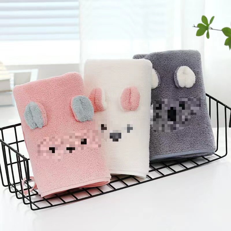 공장 도매 산호 양털 코알라 수건 목욕 타월 세트 부드러운 흡수성 보풀은 성인 만화를 퇴색하지 않습니다스토어 가기
