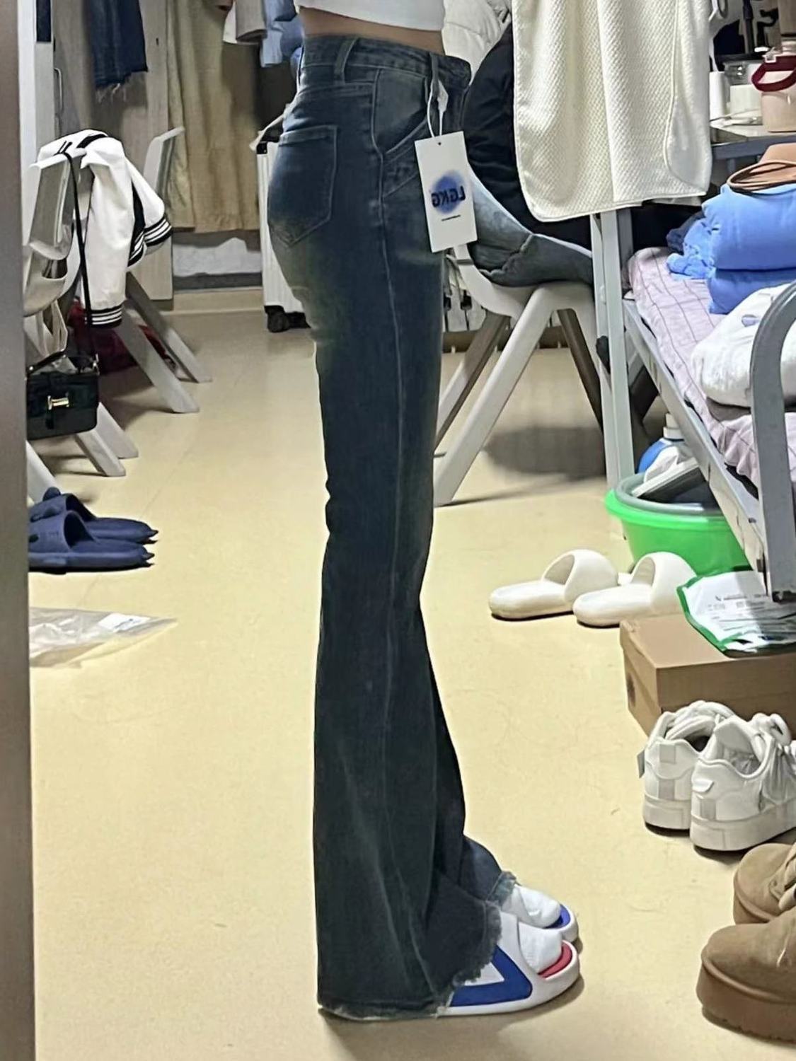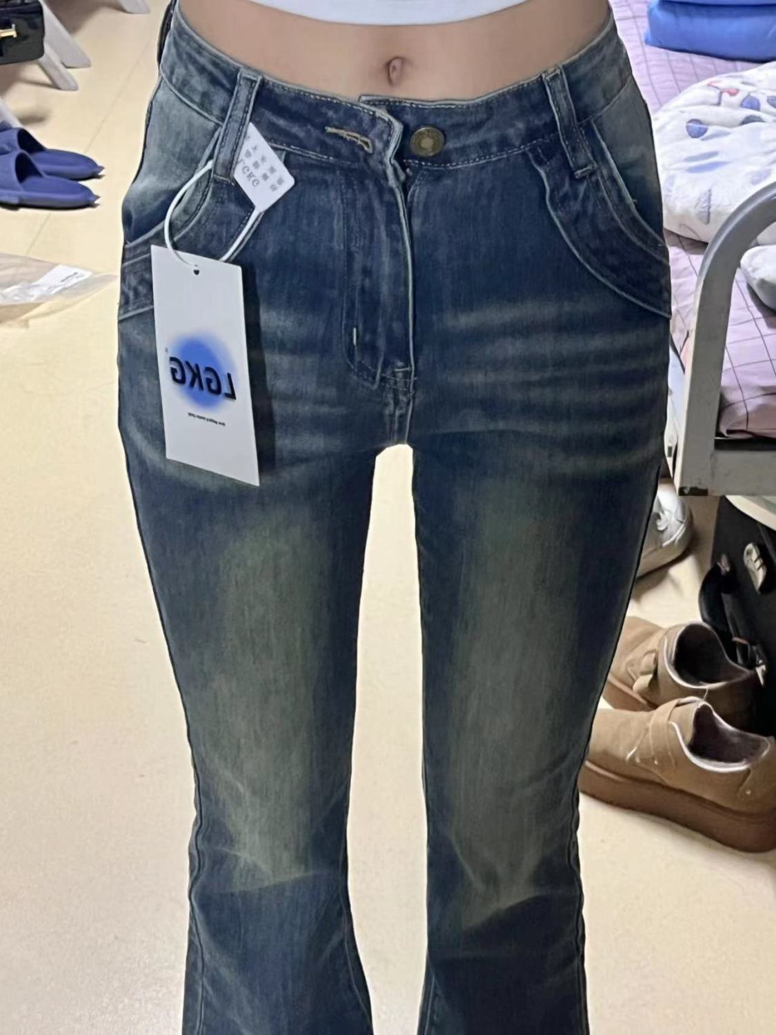 아메리칸 스타일 레트로 고민 하이 스트리트 마이크로 플레어 청바지 여성의 2024 년 여름 새로운 틈새 디자인 올 매치 바지