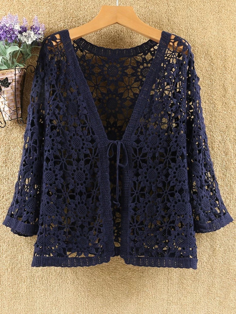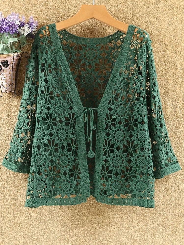 중공 레이스 태양 보호 카디건 스트랩 느슨한 니트 외부 승마 에어컨 셔츠 재킷 2024 봄 여름 가을 새로운 얇은 여성 의류