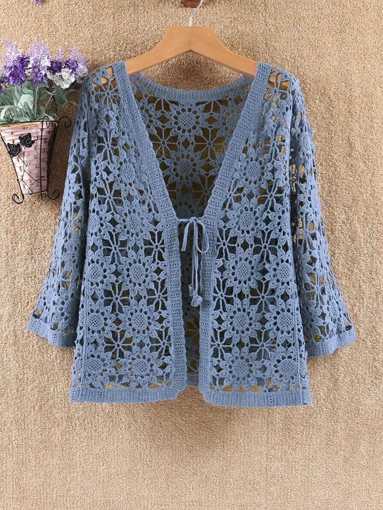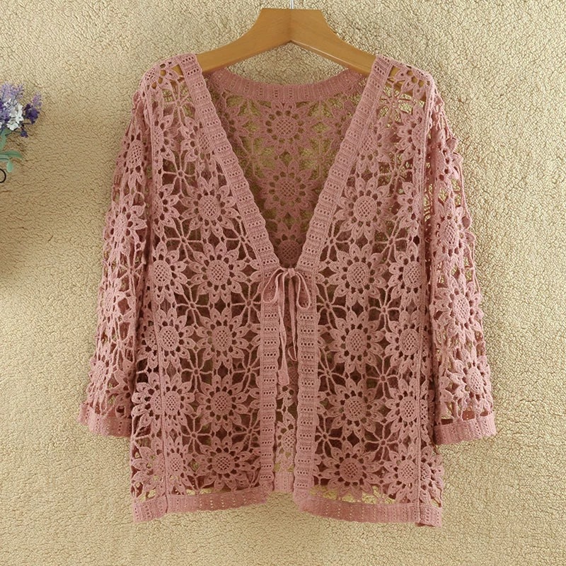 중공 레이스 태양 보호 카디건 스트랩 느슨한 니트 외부 승마 에어컨 셔츠 재킷 2024 봄 여름 가을 새로운 얇은 여성 의류스토어 가기
