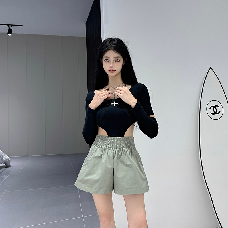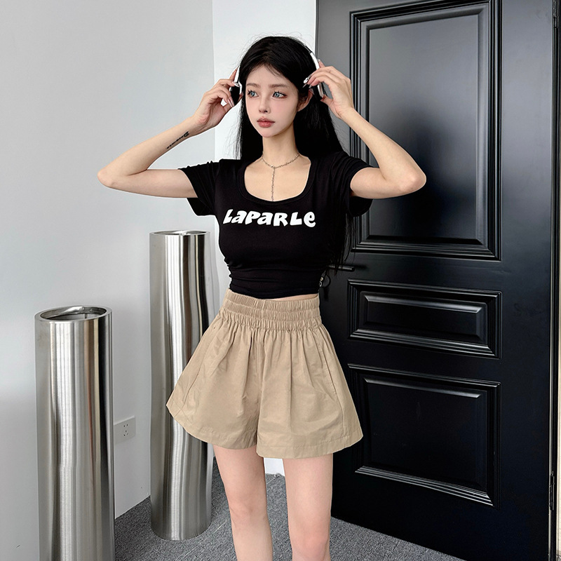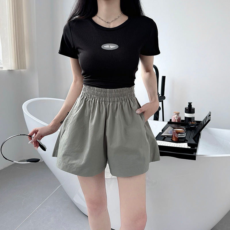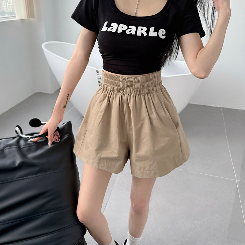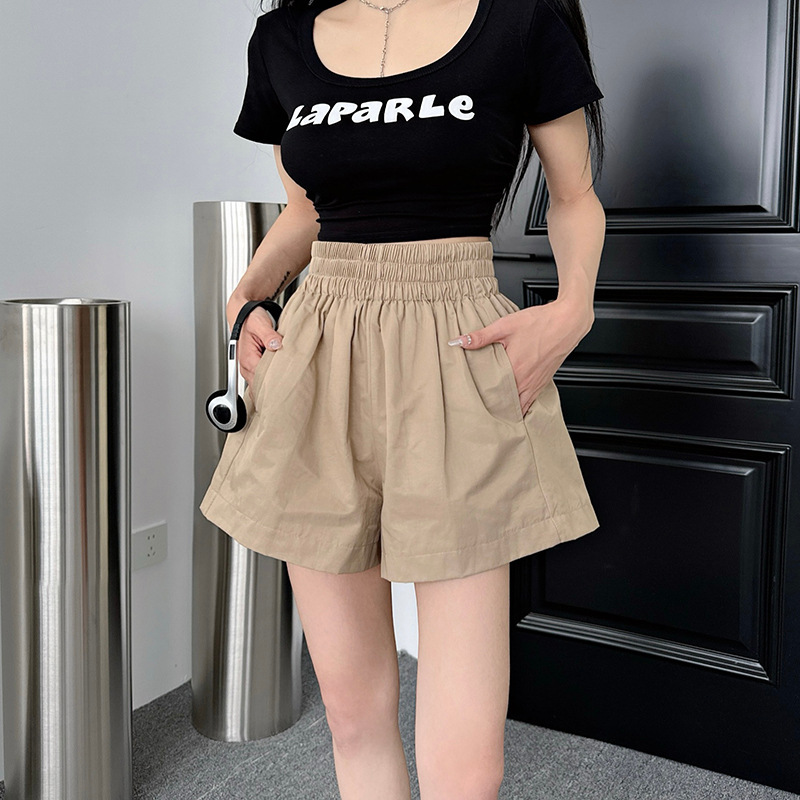 새로운 높은 허리 넓은 다리 반바지 여성 세척 코튼 느슨한 캐주얼 바지 소스 제조 업체의 한국 버전 머리의 한 세대 발견스토어 가기