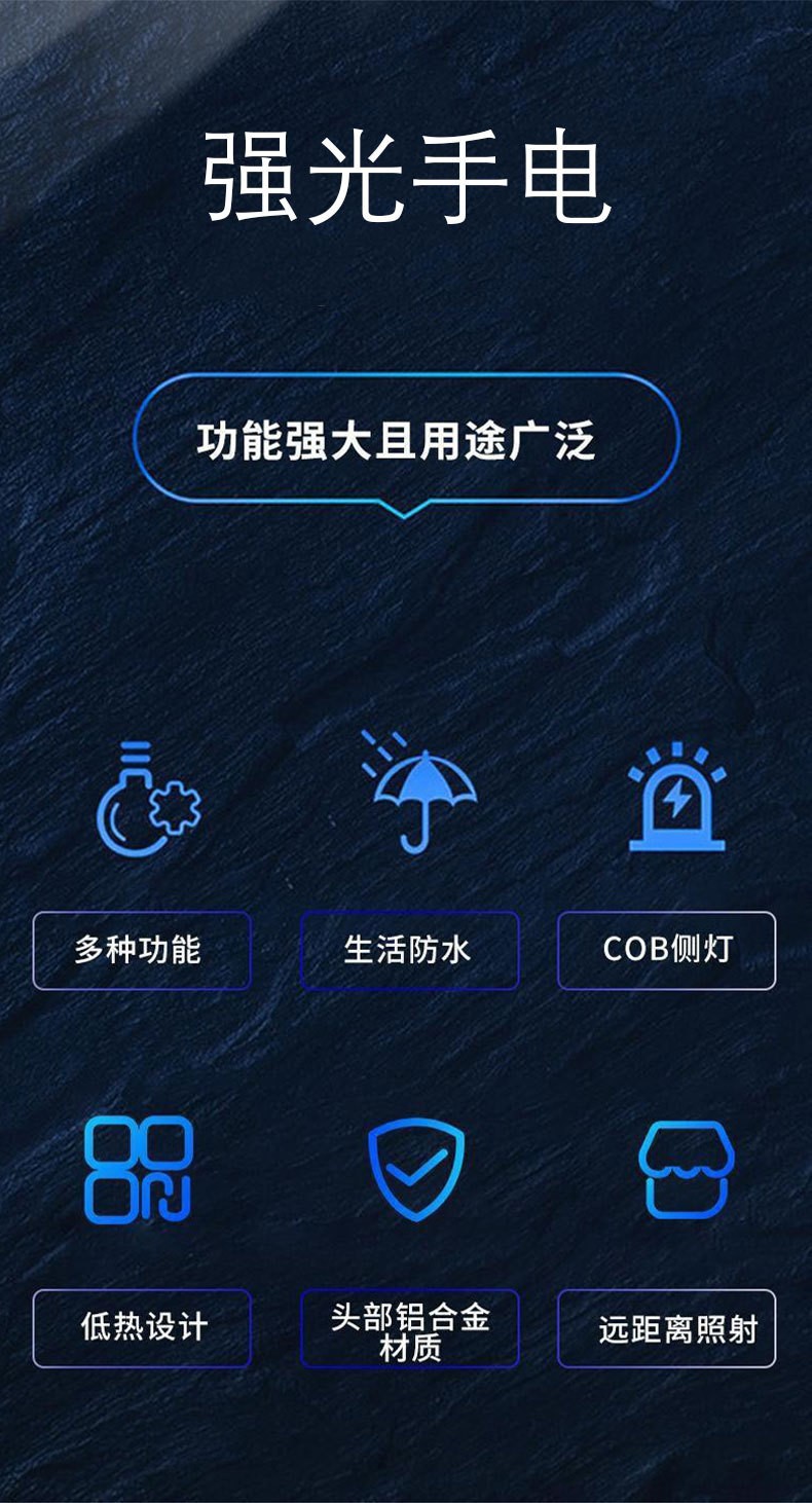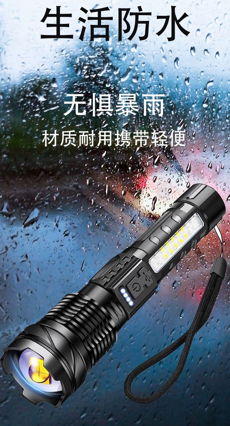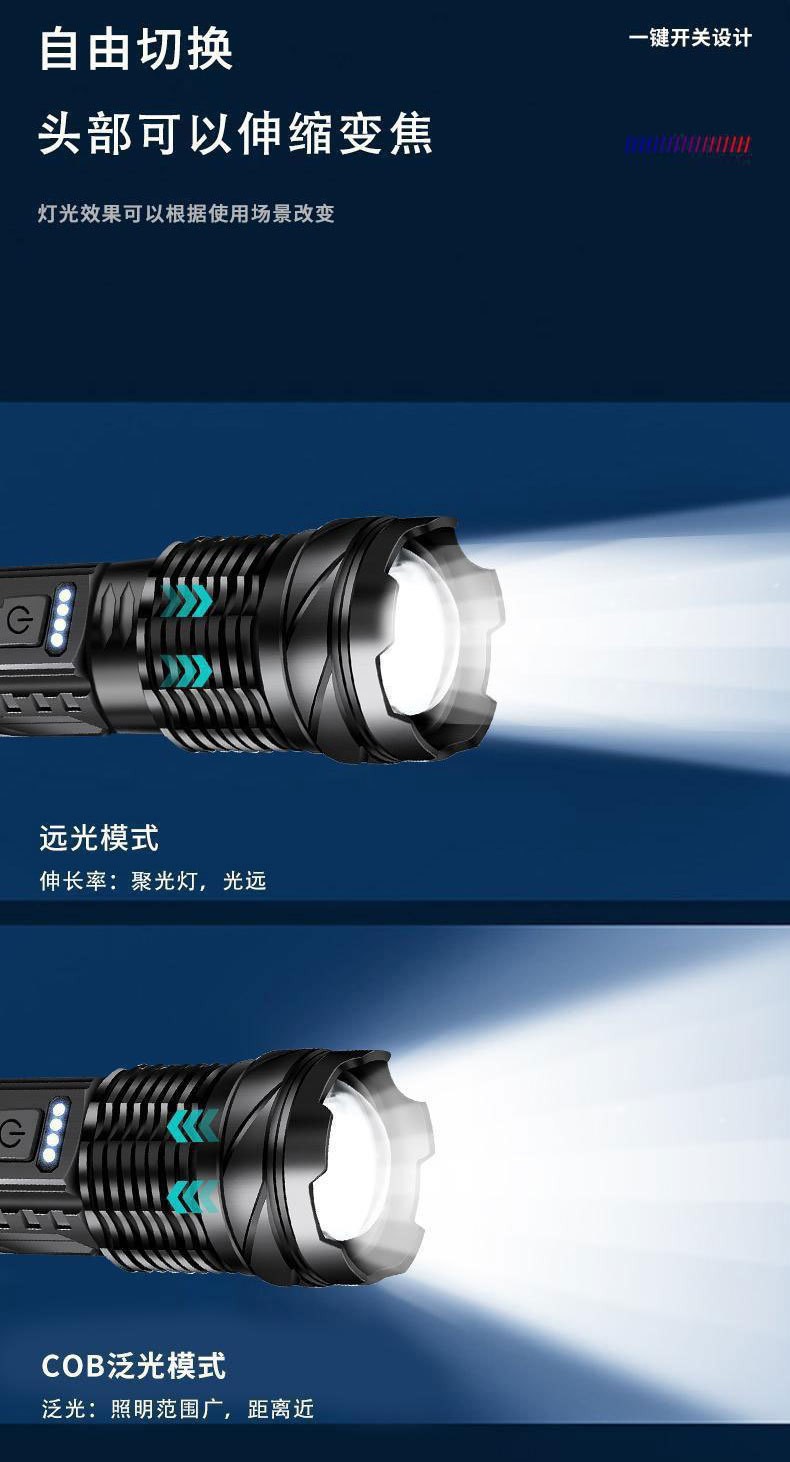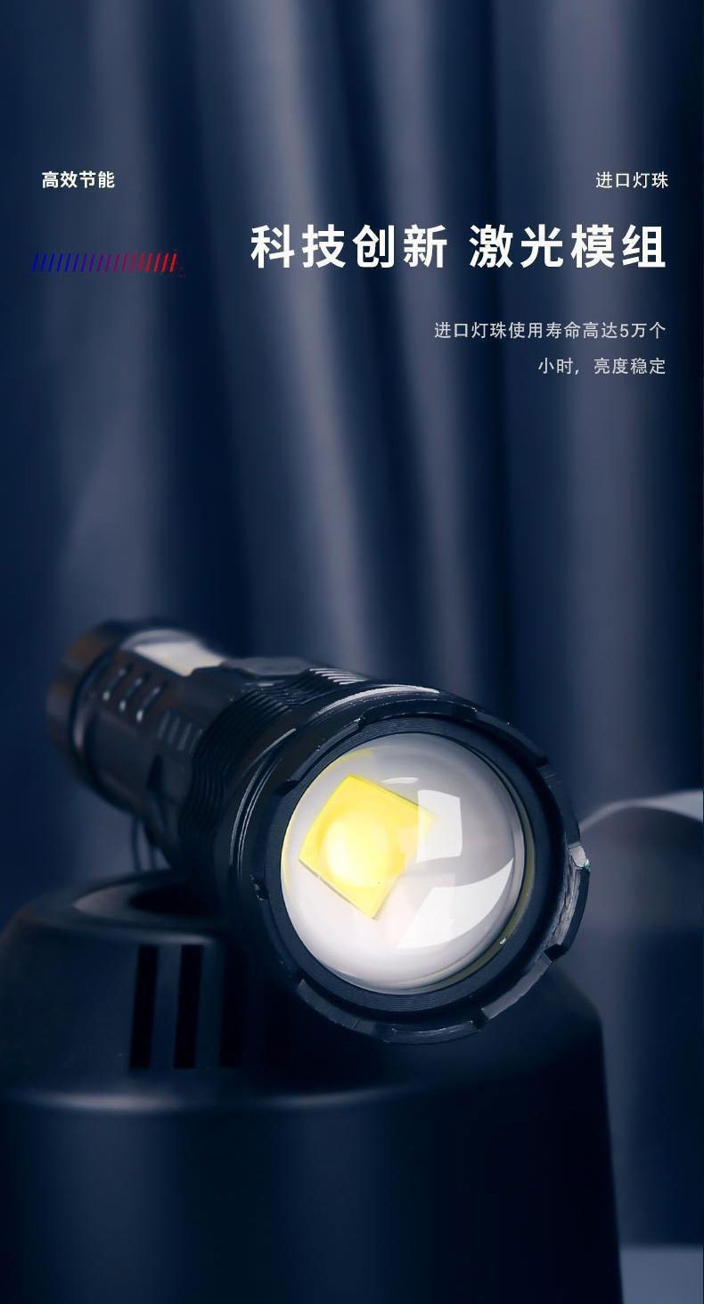 국경 간 새로운 손전등 강한 빛 야외 순찰 캠핑 usb 충전식 야외 조명 흰색 레이저 COB 손전등스토어 가기