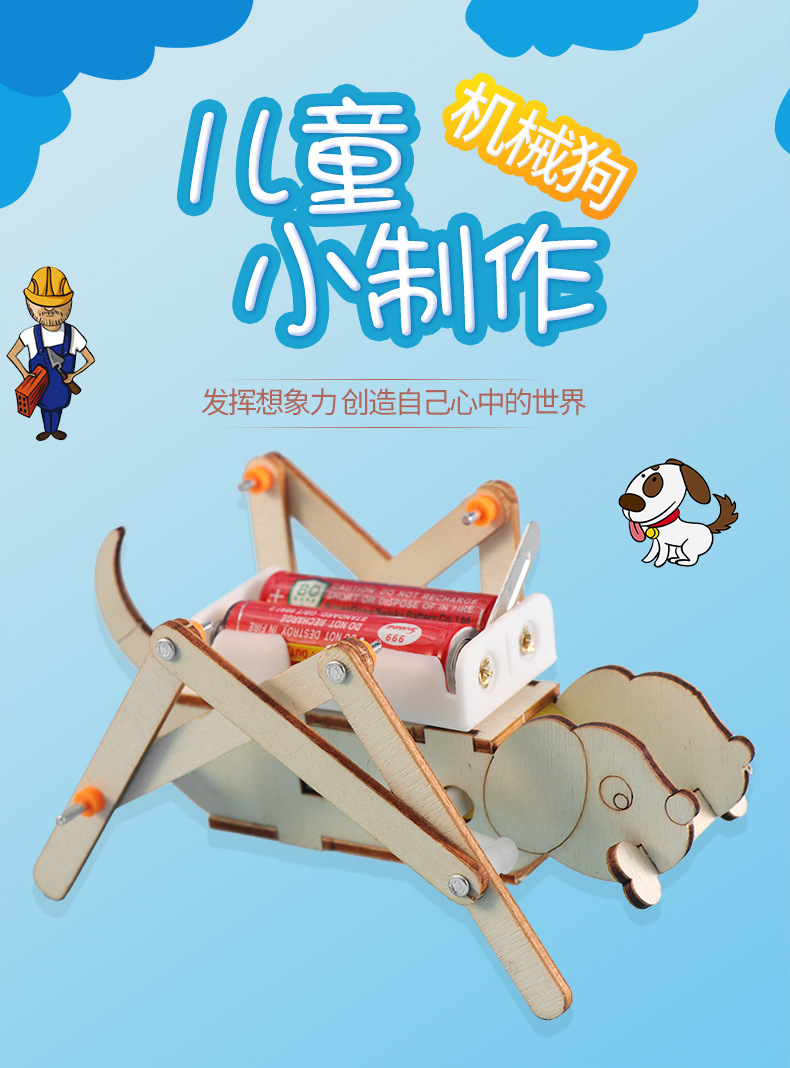 기계식 개 소재 가방 어린이 창조적 인 과학 기술 작은 생산 과학 기술 작은 발명 STEM 메이커 교육 보조 공장 직접 판매스토어 가기