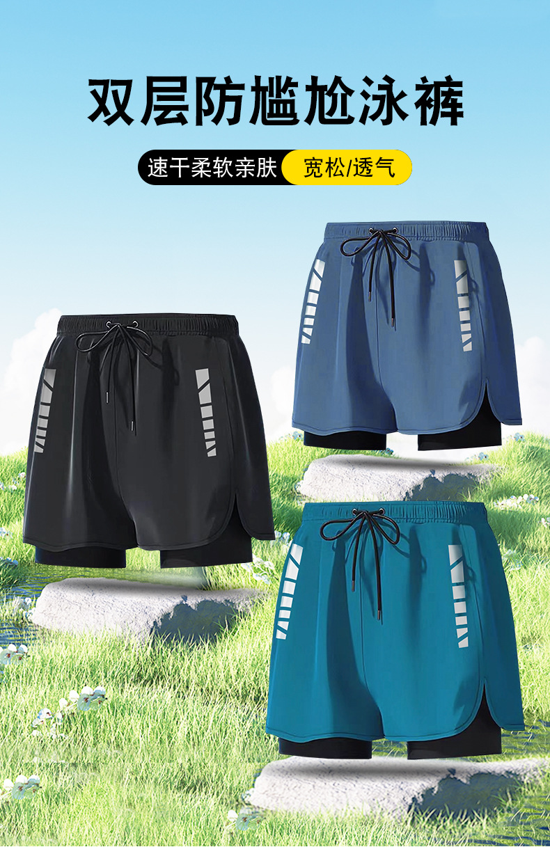 남성용 이중층 속건 수영복, 수영복, 온천 수영복, 루즈한 대형 비치 수영복, 제조업체 도매스토어 가기