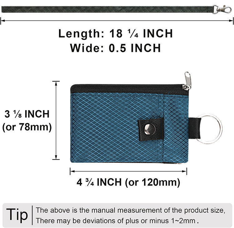 Minimalist RFID Blocking Small Wallet with ID Window,WaterResistant Zip Id Case Wallet with Lanyard Keychain for Cards,Cash,Travel,Women,Men (Black)
