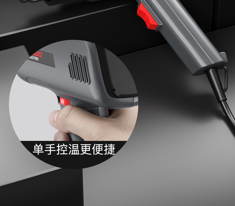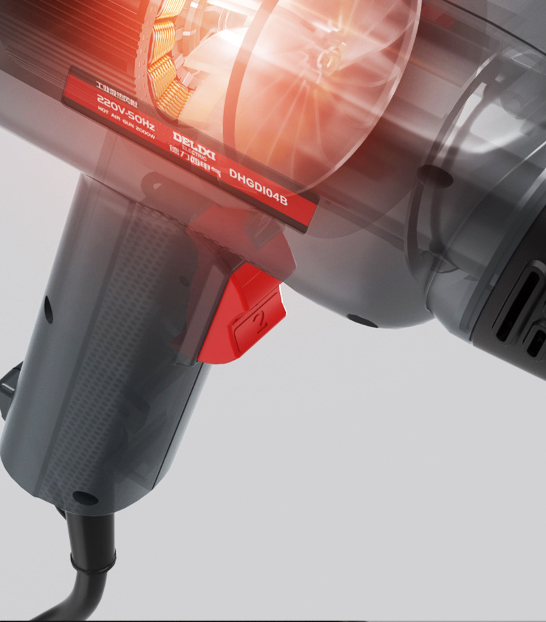 Delixi 전기 뜨거운 공기 총 작은 디지털 디스플레이 고출력 뜨거운 공기 팬 굽기 총 전자 유지 보수 필름 헤어 드라이어