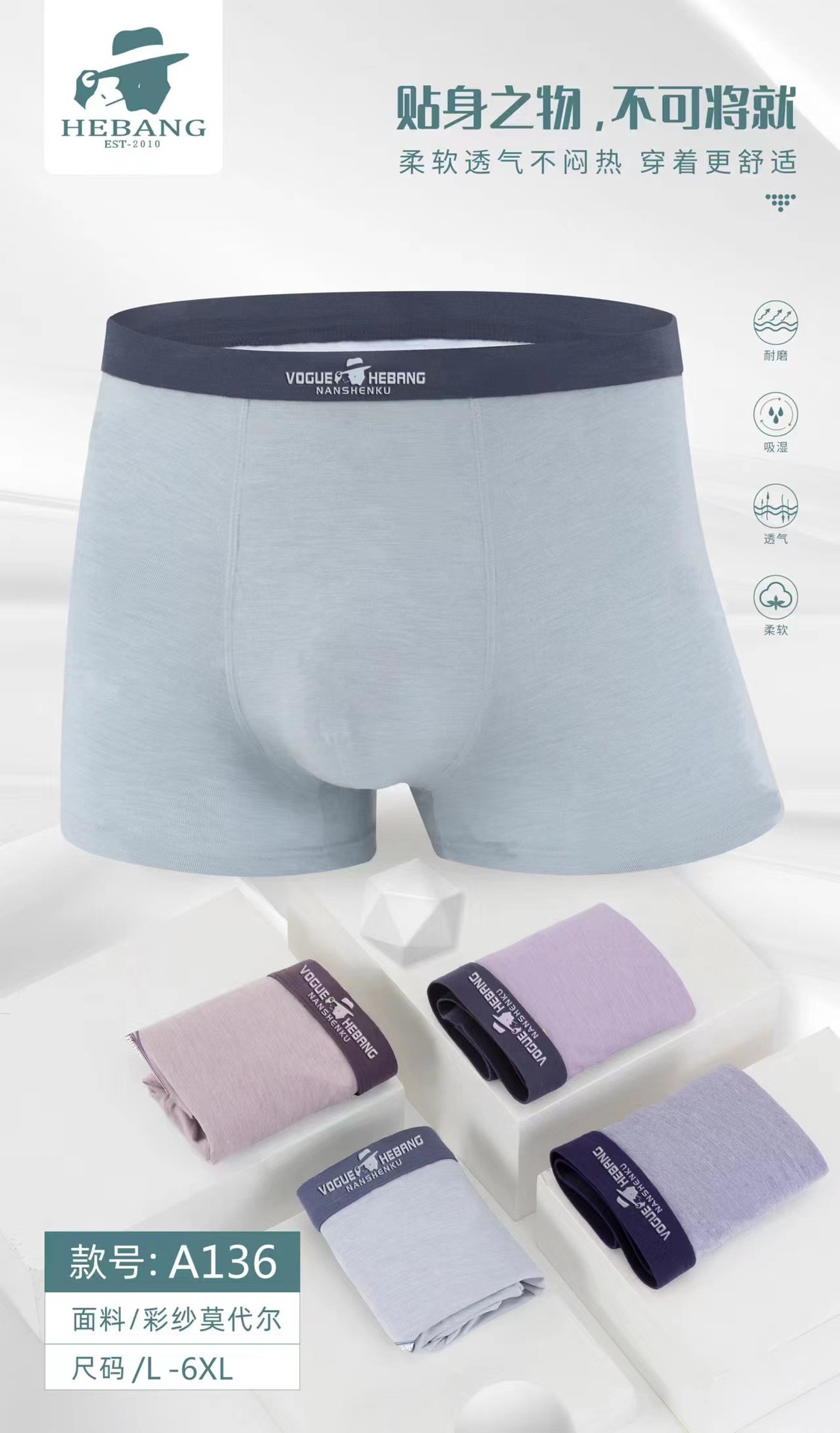 재즈 헤방 136 남자 모달 중간 허리 솔리드 컬러 모란디 컬러 원사 바지 대형 주니어 남자 속옷 반바지