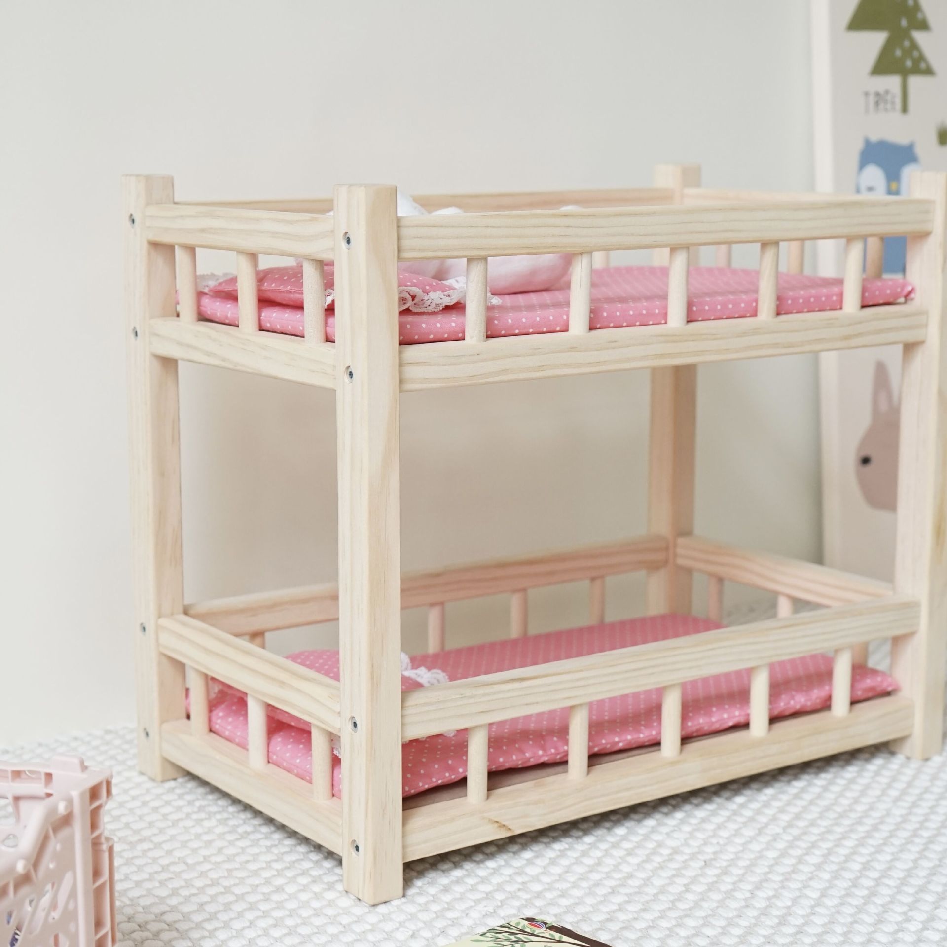 나무 인형 침대 작은 침대 놀이 집 어린이 장난감 유치원 지역 코너 소재 나무 시뮬레이션 홈 선물스토어 가기