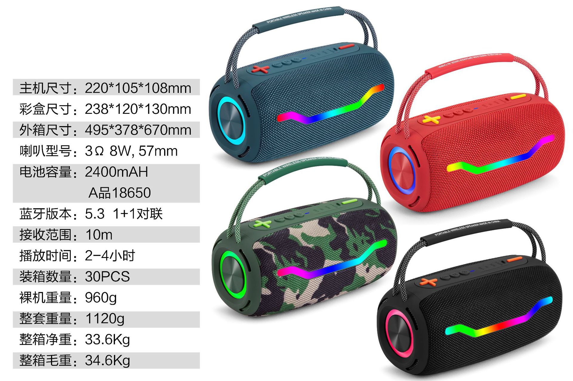 크로스보더 방수 패브릭 오디오 블루투스 휴대용 야외 서브우퍼 무선 카드 슬롯 가정용 스피커 데스크탑 분위기 조명