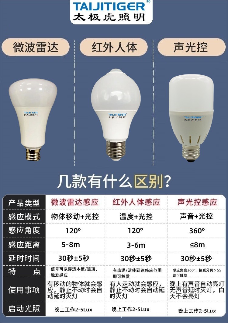 LED 레이더 유도 전구 계단 통로 지능형 적외선 인체 유도 램프 E27 스크류 사운드 및 조명 제어 전구스토어 가기