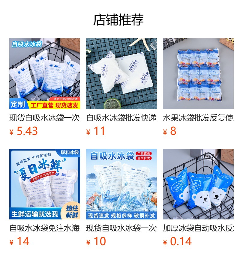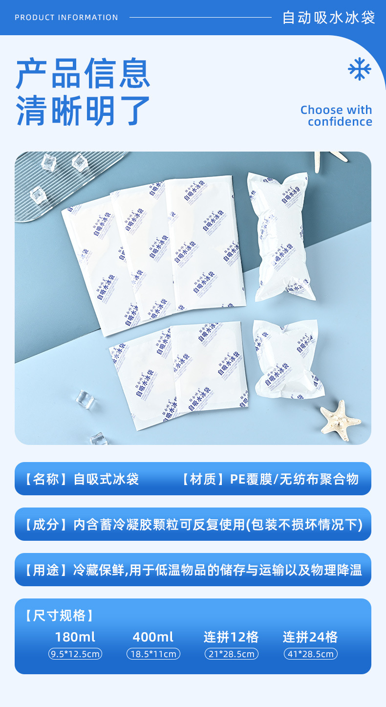 자가 흡수성 아이스 백 도매 익스프레스 특별 냉동 일회용 냉각 백 신선한 유지 신선한 물 주입 가정용 및 상업적 사용스토어 가기