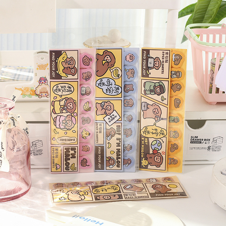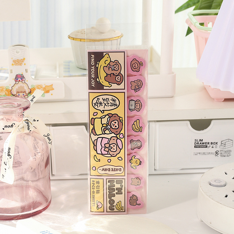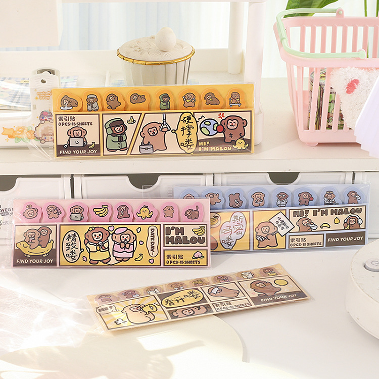 작은 원숭이? 색인 페이스트 귀여운 원숭이 분류 붙여 높은 색상 값 열 붙여 넣기 학생들은 끈적 글쓰기 라벨 종이를 가지고스토어 가기