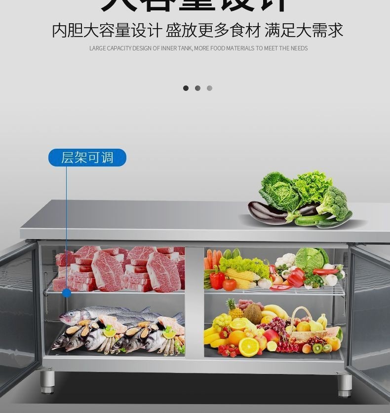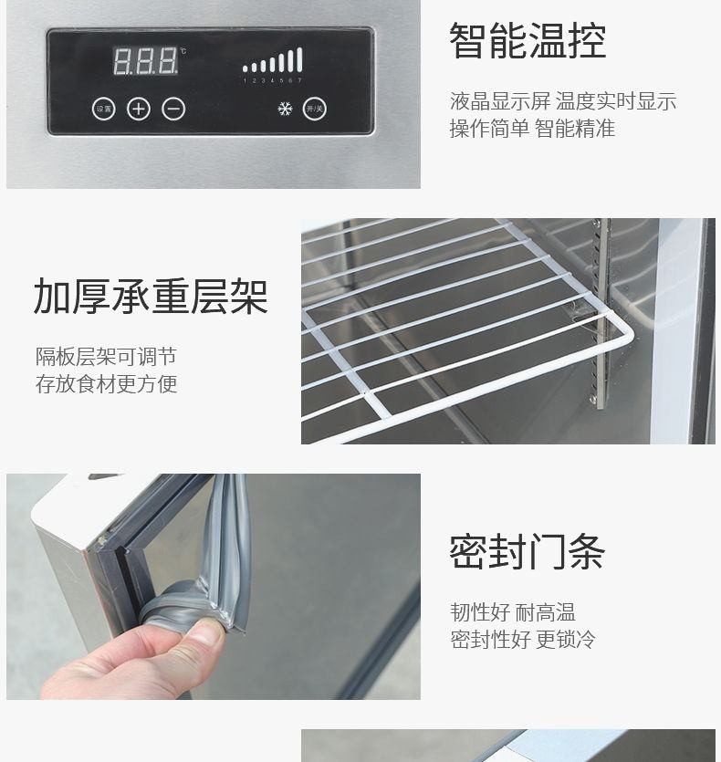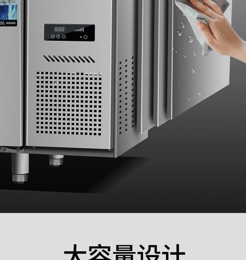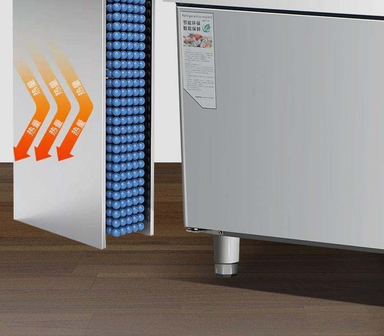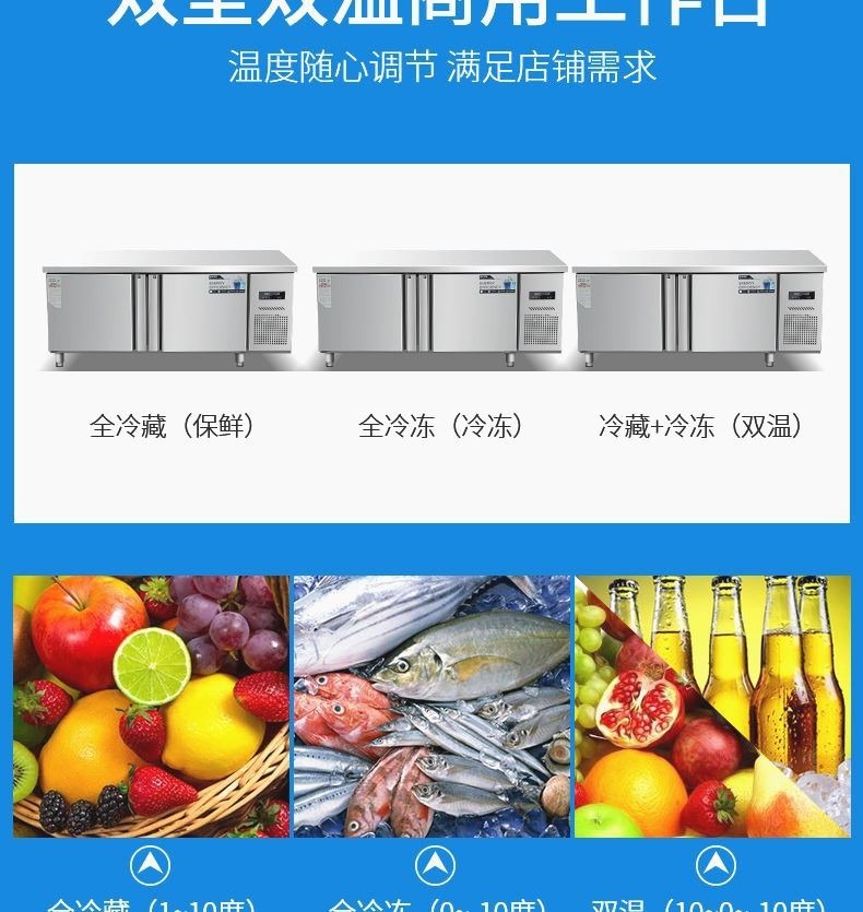 상업용 스테인레스 스틸 수평 냉장 작업대 플랫 콜드 콘솔 우유 차 캐비닛 쇼핑몰 주방 호텔스토어 가기