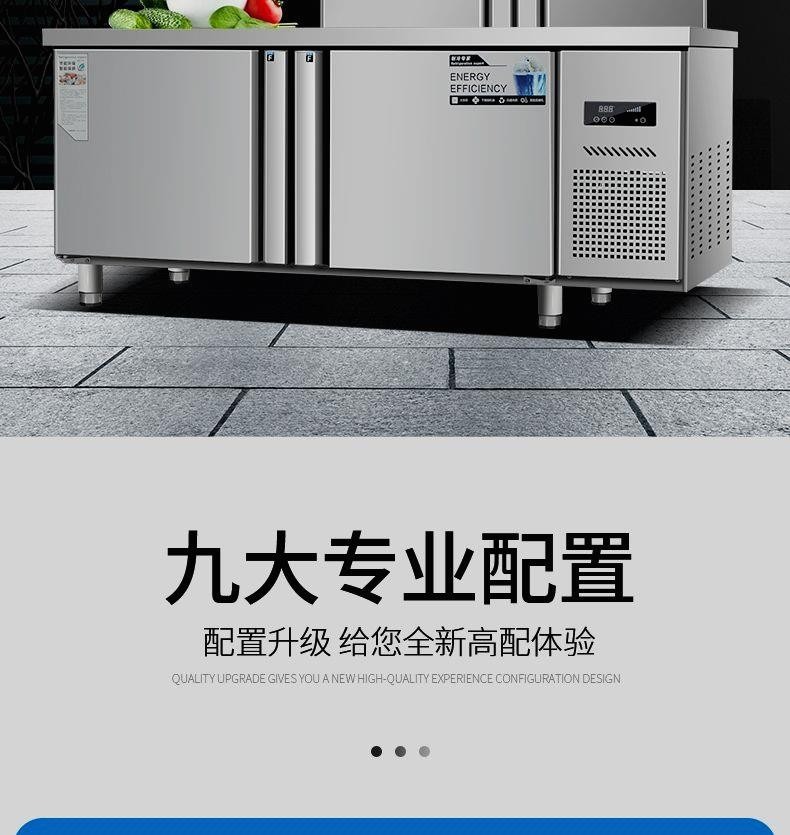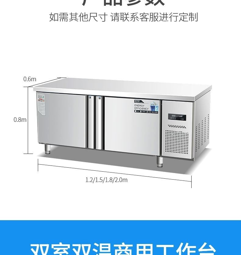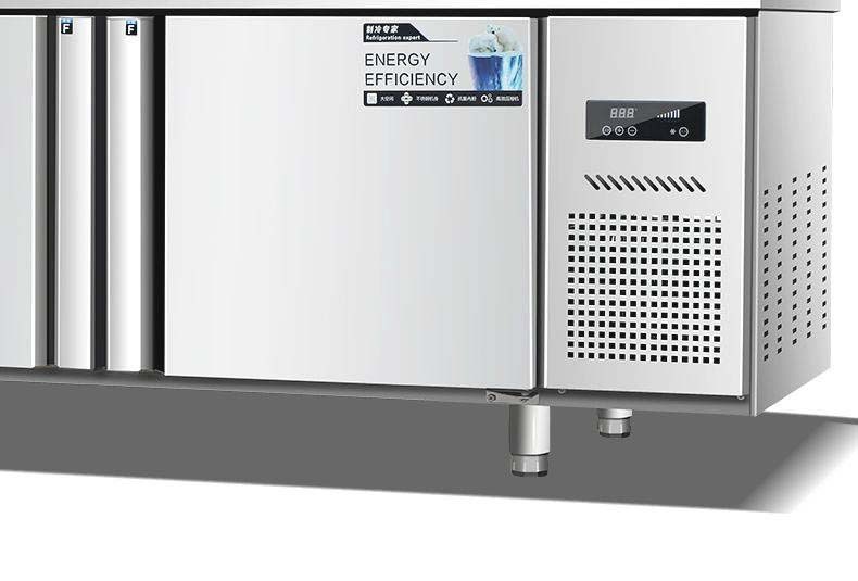 상업용 스테인레스 스틸 수평 냉장 작업대 플랫 콜드 콘솔 우유 차 캐비닛 쇼핑몰 주방 호텔