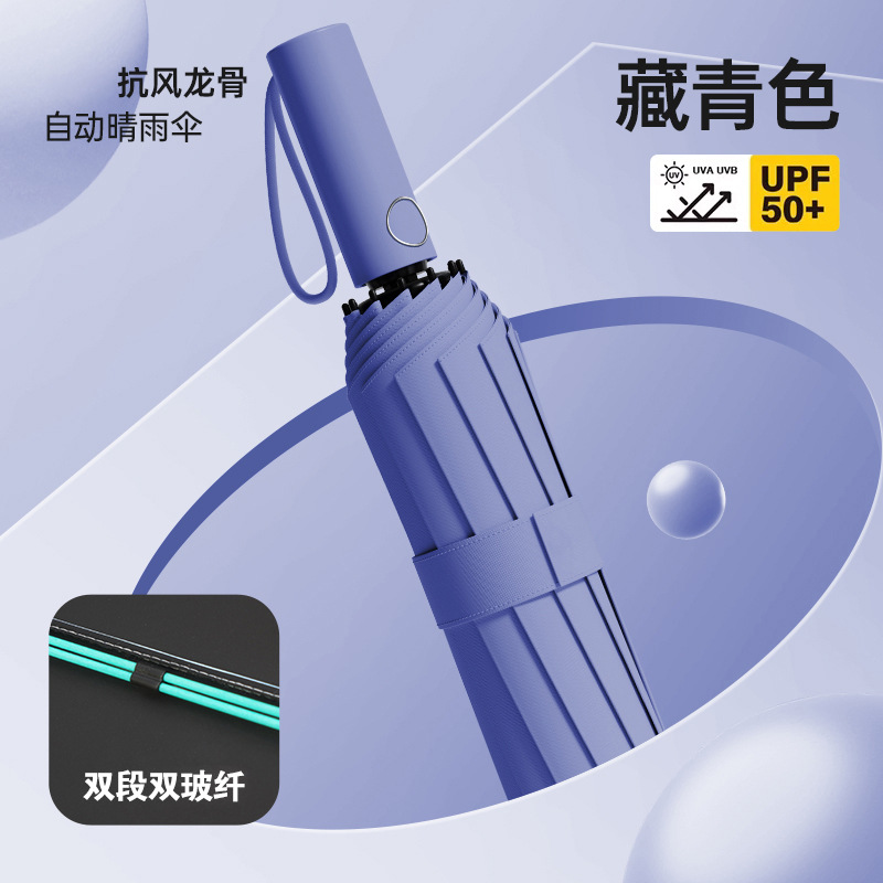 • [이중 갈비 자동 모델] 40섹션 유리 섬유 방풍 우산 갈비 - 네이비 블루