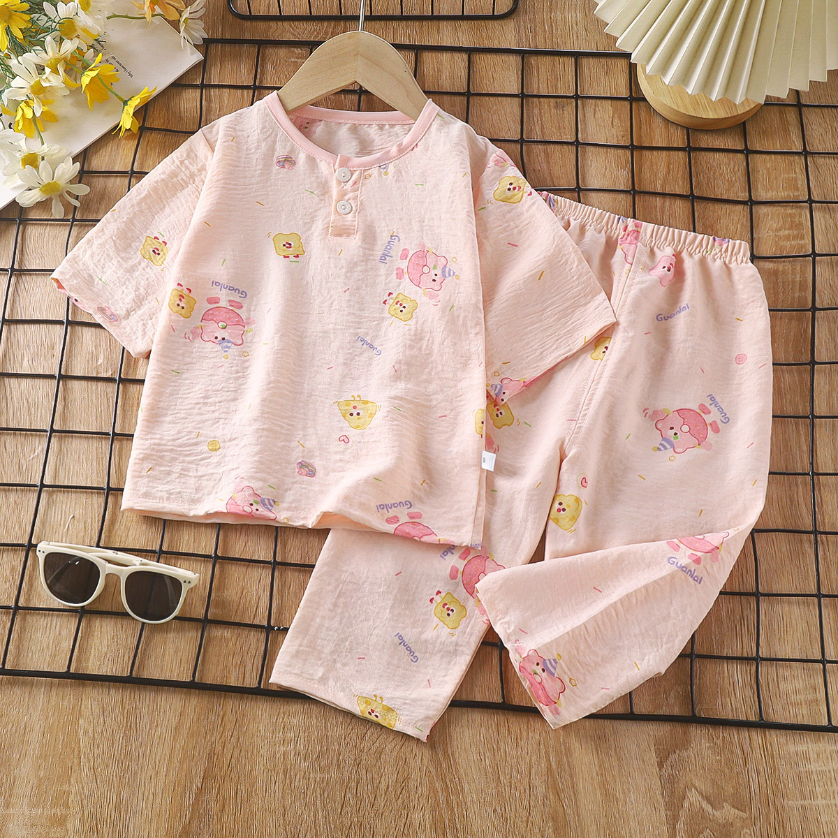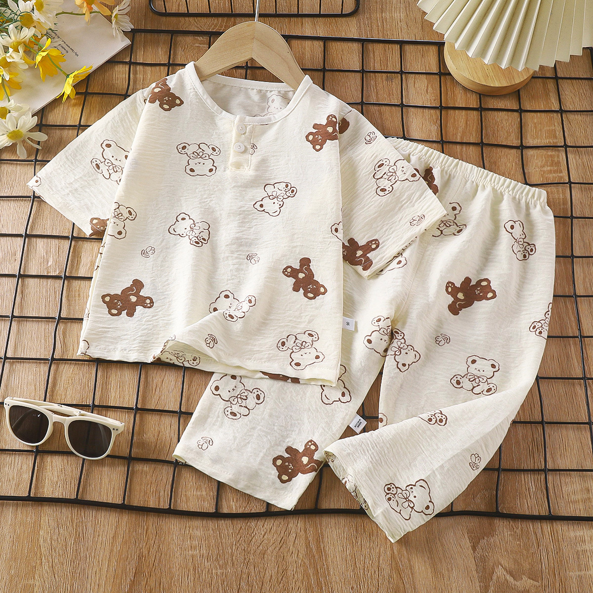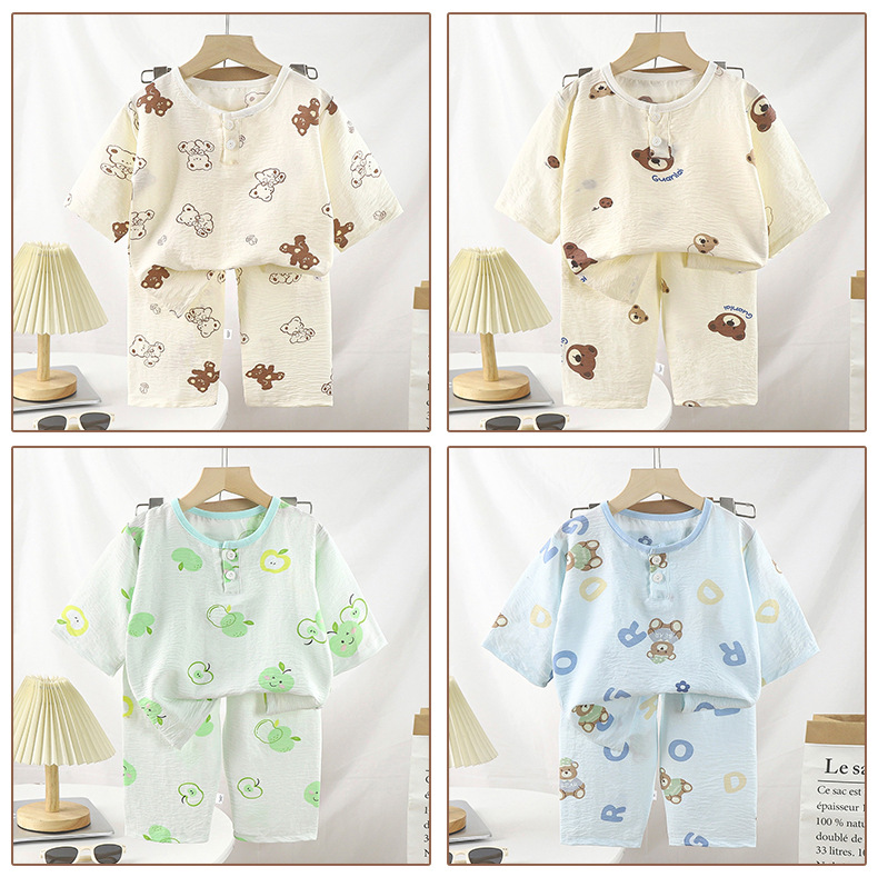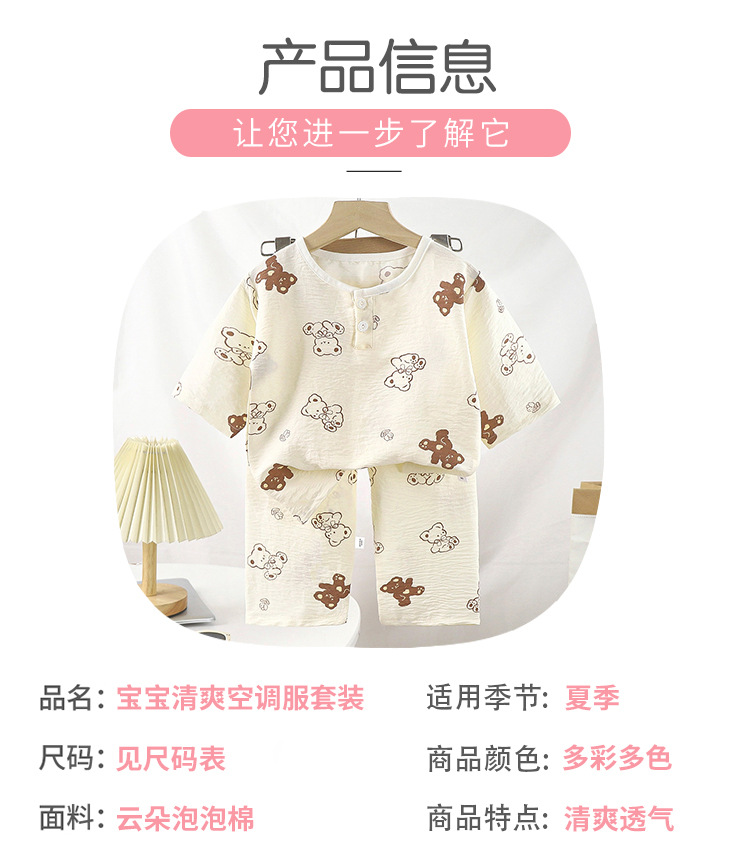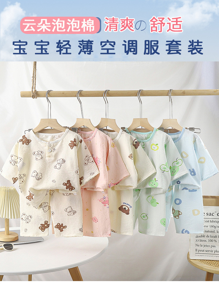 2024 어린이 잠옷 여름 새로운 얇은 여아 홈 옷 구름 에어컨 아기 7 점 세트스토어 가기