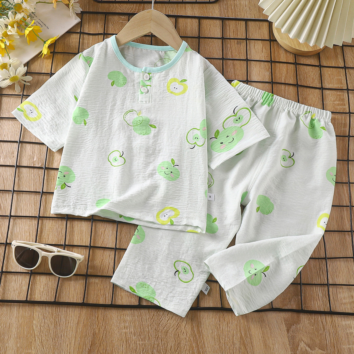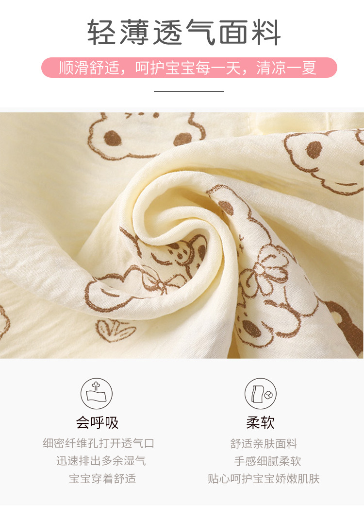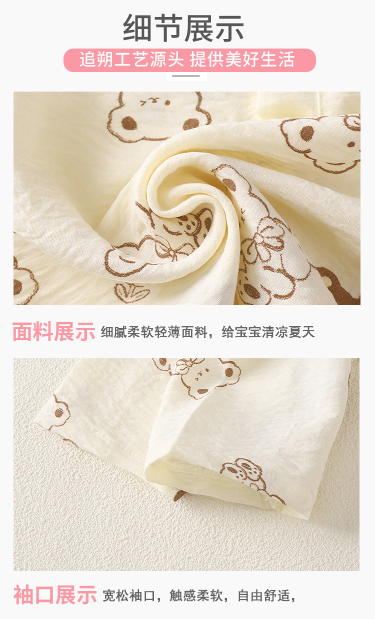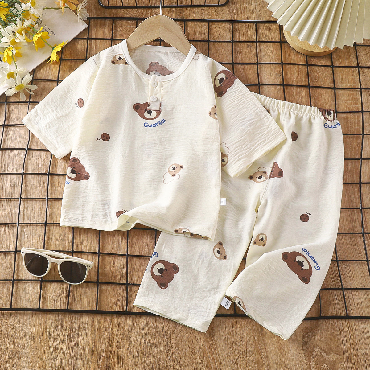 2024 어린이 잠옷 여름 새로운 얇은 여아 홈 옷 구름 에어컨 아기 7 점 세트스토어 가기