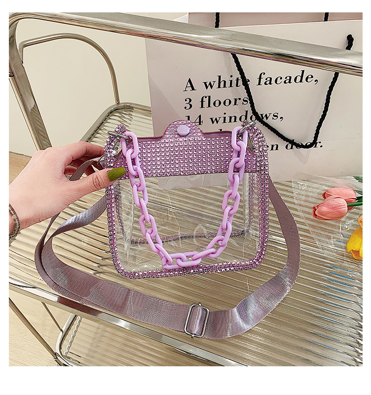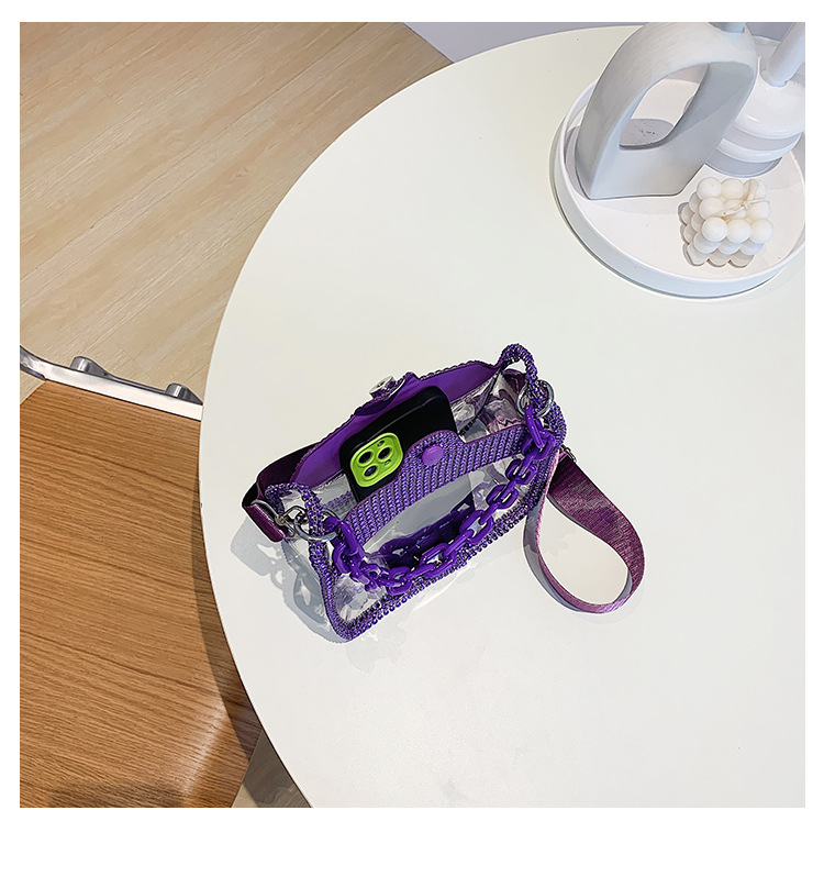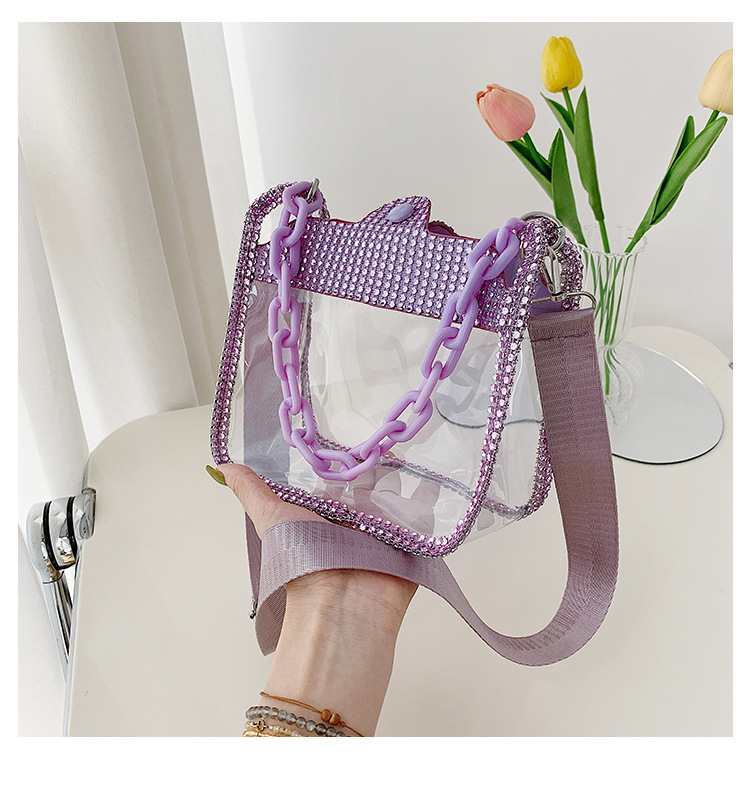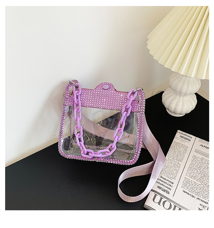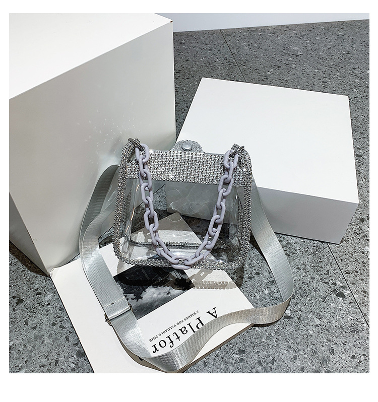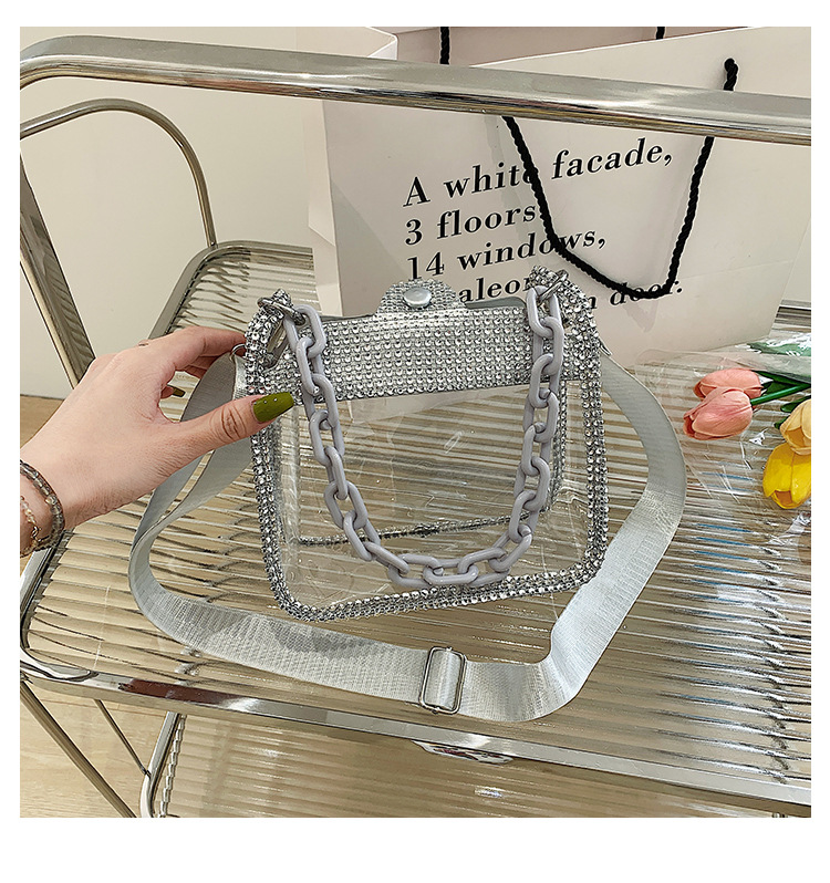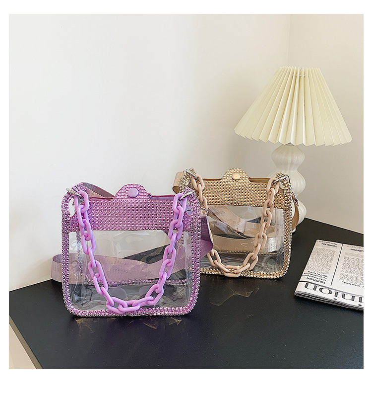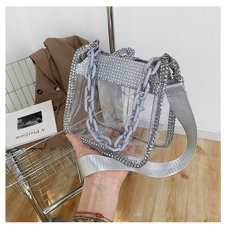 도매 패션 투명 체인 백 풀 다이아몬드 여성 가방 인기있는 새로운 패션 휴대용 PVC 어깨 가방 소녀 가방