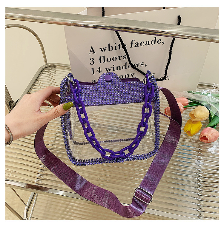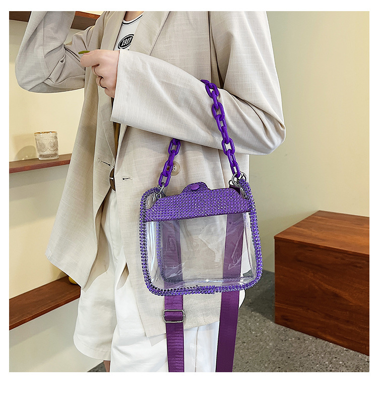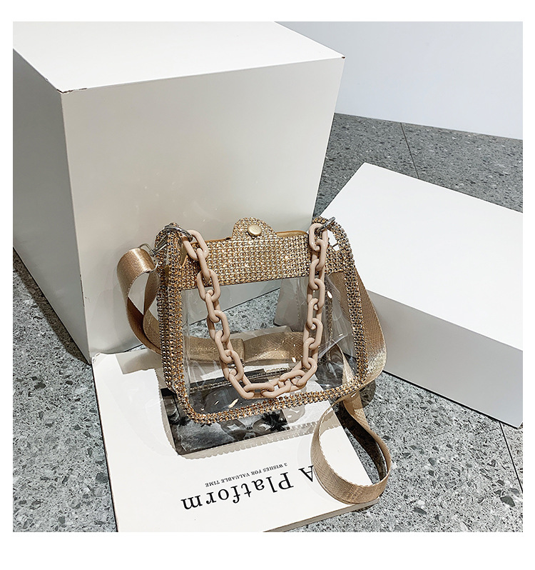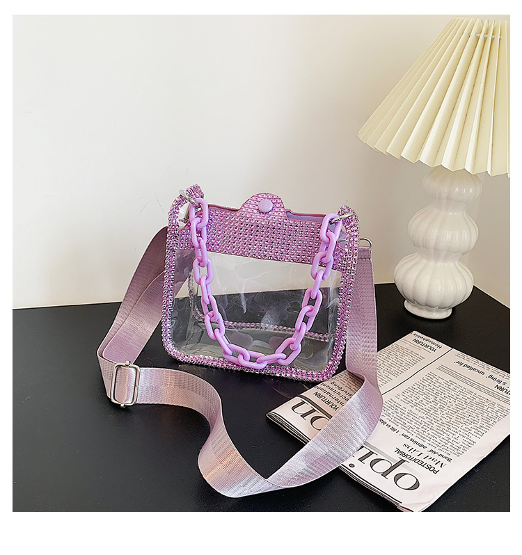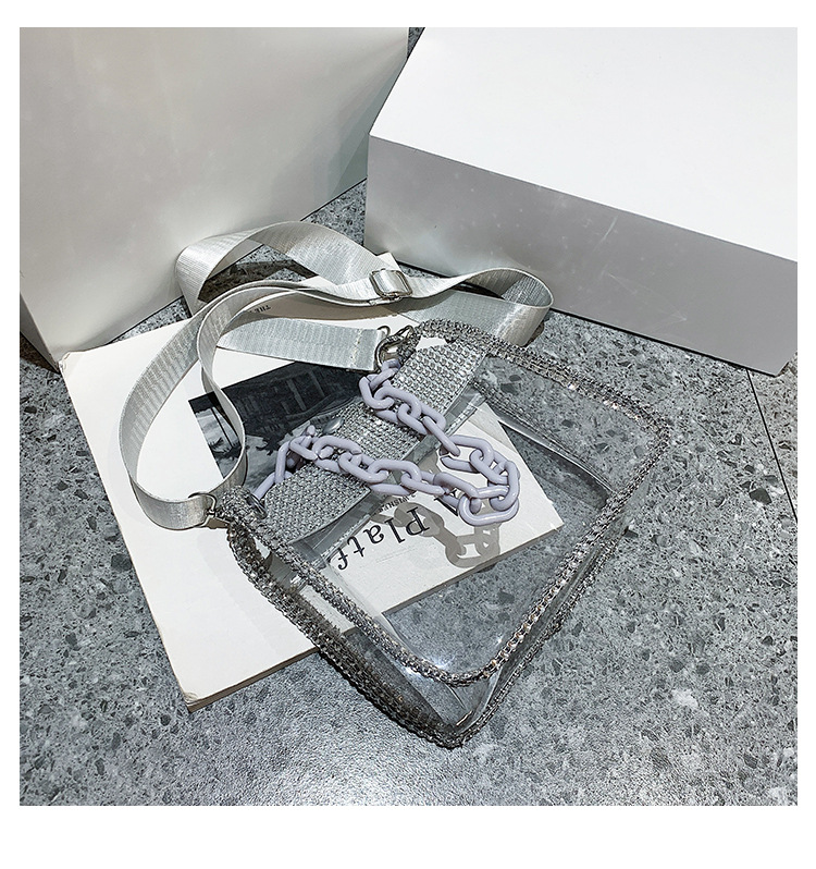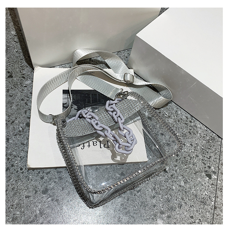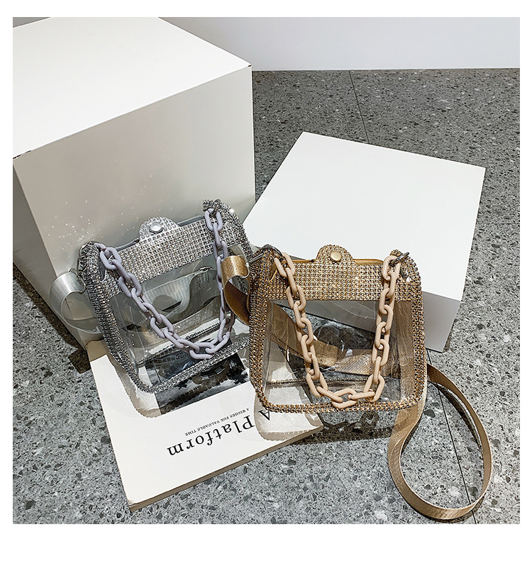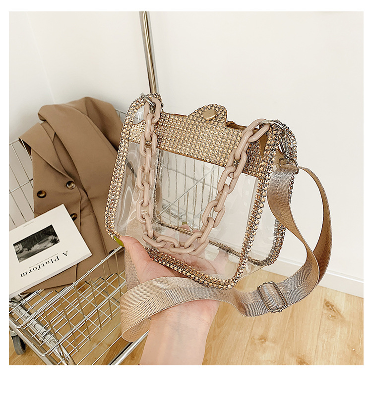 도매 패션 투명 체인 백 풀 다이아몬드 여성 가방 인기있는 새로운 패션 휴대용 PVC 어깨 가방 소녀 가방
